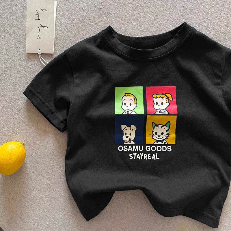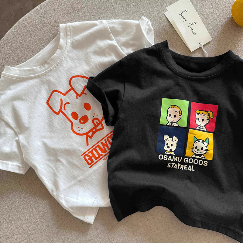 순면 아동용 반팔 티셔츠 여름 2026 신상품 다용도 심플 캐주얼 만화 애니메이션 남아 여아 상의