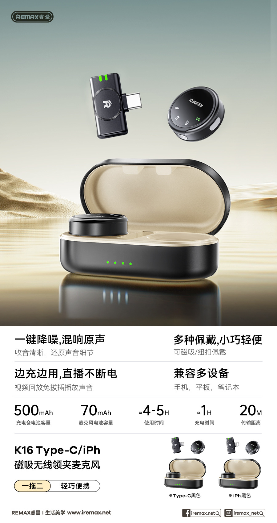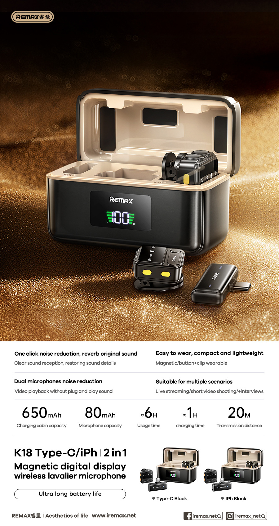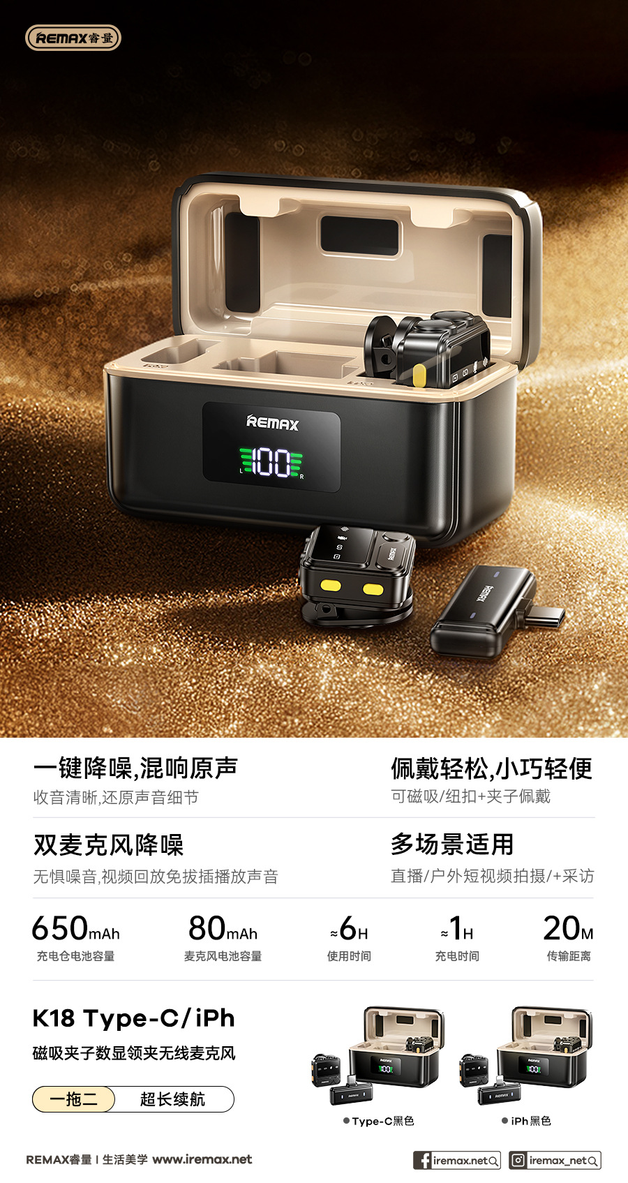 리맥스 아웃도어 라이브 방송 인터뷰 마이크, 라이브 방송 마이크, 소음 감소 무선 마이크, 휴대폰 라이브 방송 마이크