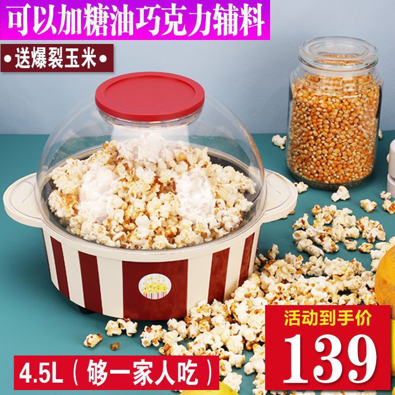 자동 팝콘 기계 전기 가정 어린이 작은 상업용 구형 팝콘 진한 베이지 오일 초콜릿스토어 가기