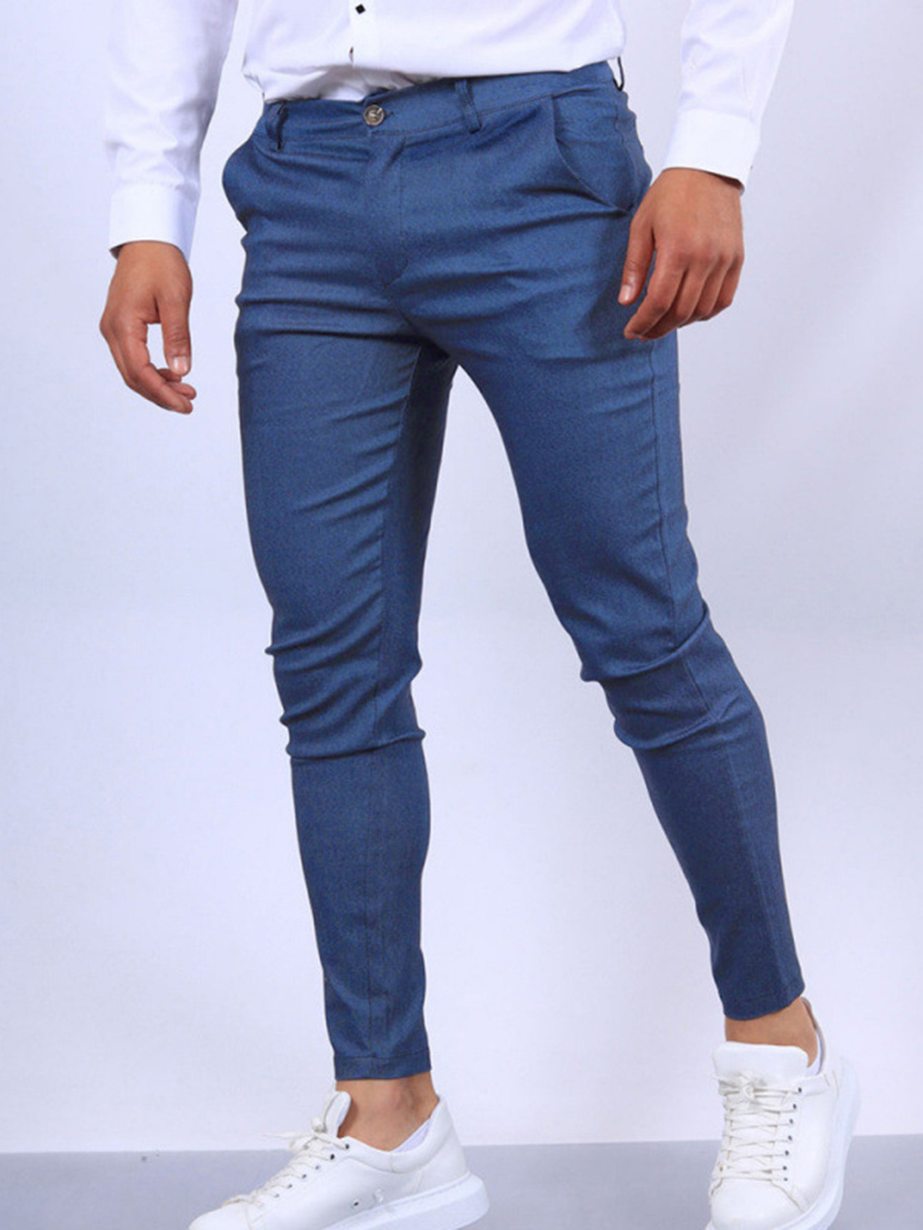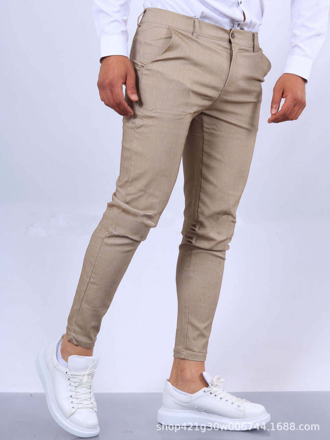 유럽과 미국의 국경 간 독립 역 남성 솔리드 컬러 타이트 포켓 지퍼 비즈니스 캐주얼 슬림 핏 바지스토어 가기