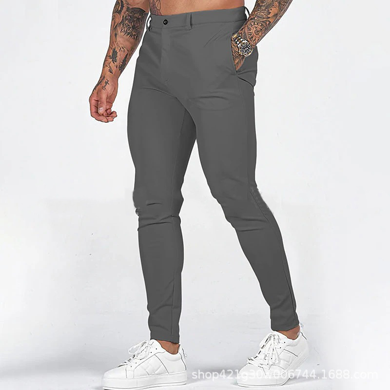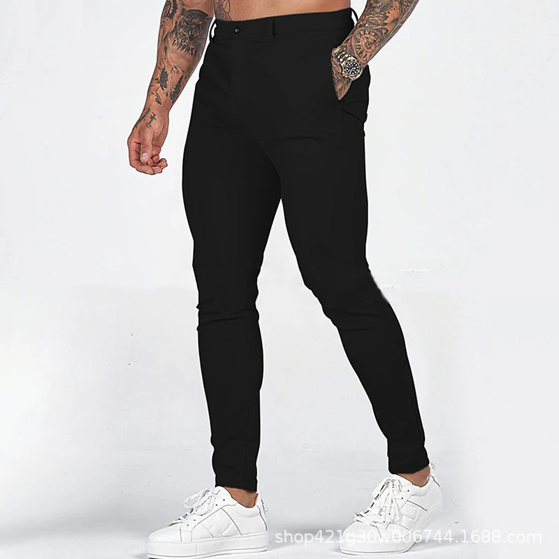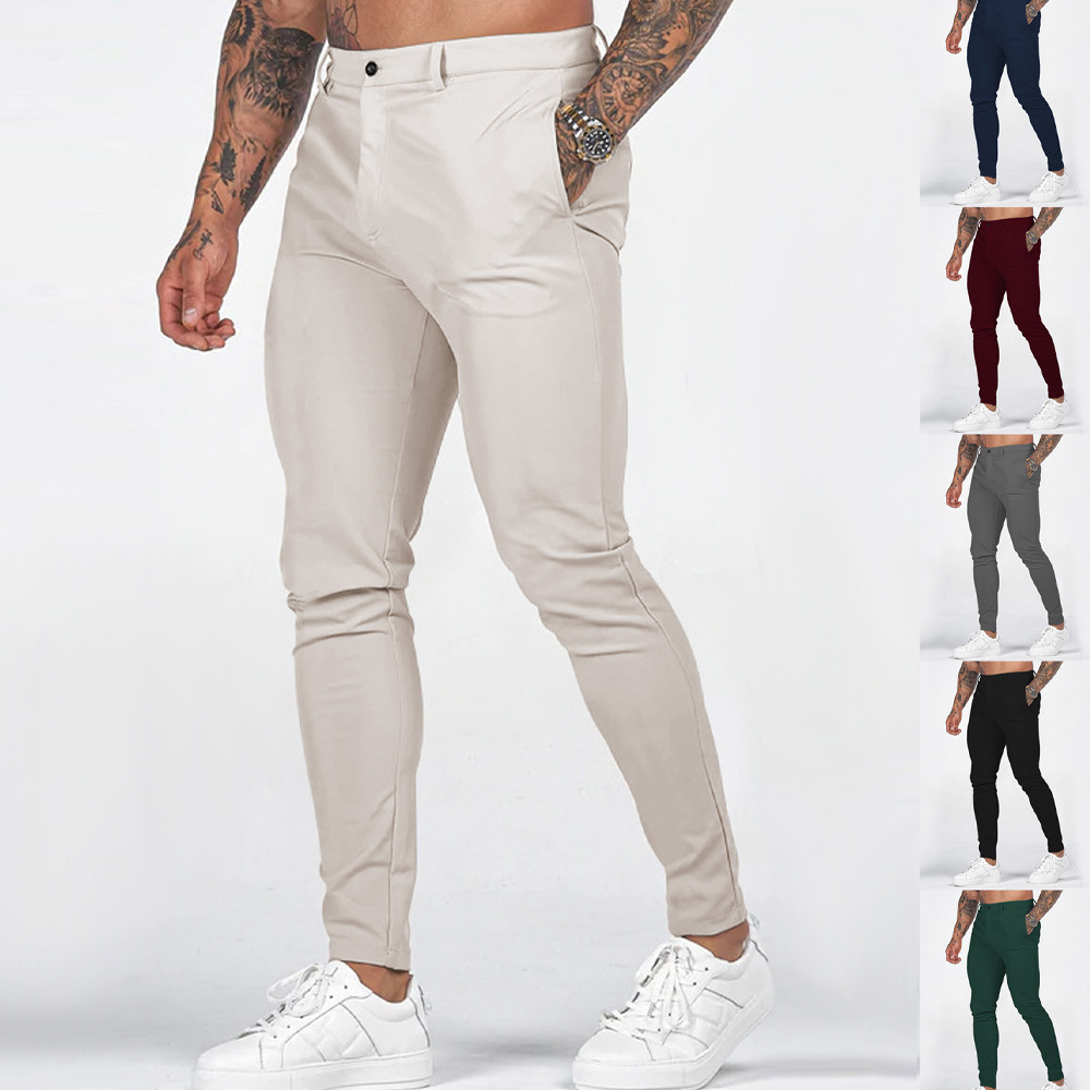 유럽과 미국의 국경 간 독립 역 남성 솔리드 컬러 타이트 포켓 지퍼 비즈니스 캐주얼 슬림 핏 바지