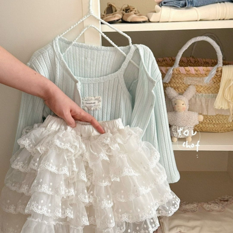2025 년 여름 새 여아 한국 스타일 레이스 레이스 스커트 케이크 스커트 어린이 서양식 올 매치 하프 길이 메쉬 스커트