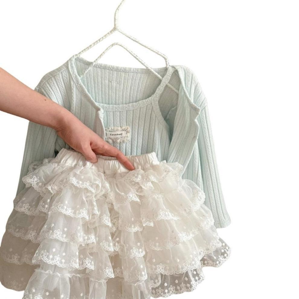 2025 년 여름 새 여아 한국 스타일 레이스 레이스 스커트 케이크 스커트 어린이 서양식 올 매치 하프 길이 메쉬 스커트스토어 가기