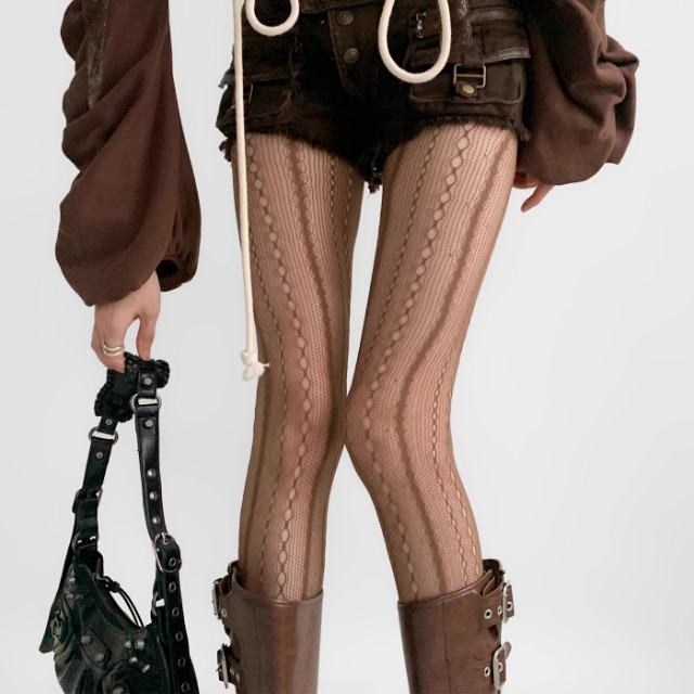 레이스 할로우 자카드 실크 스타킹 격자 섹시한 다리 수직 스트라이프 메쉬 다크 브라운 팬티 스타킹스토어 가기