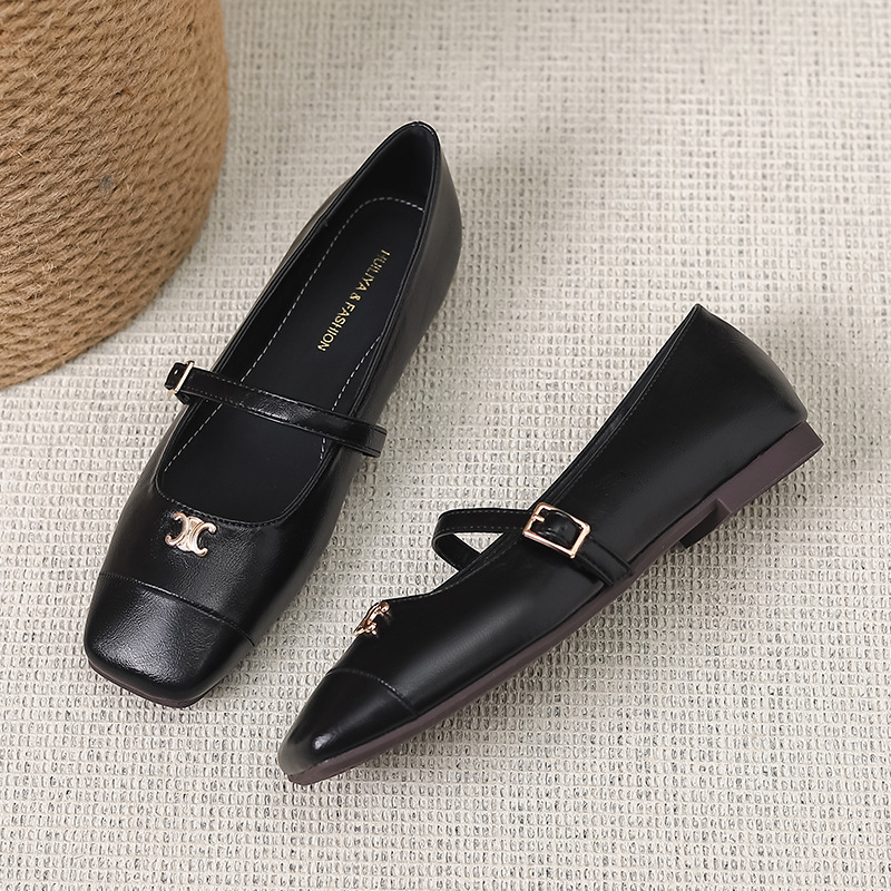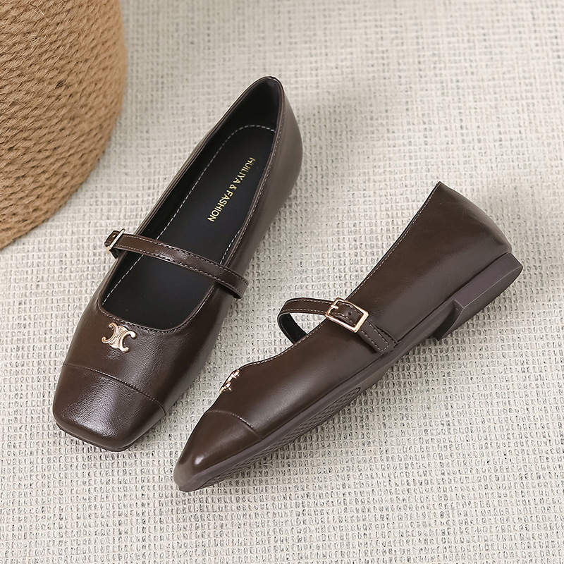 2025 봄과 가을 새로운 한국 스타일 레트로 올 매치 메리 제인 신발 플랫 스퀘어 토 한 단어 버클 얕은 입 싱글 레이어 신발스토어 가기