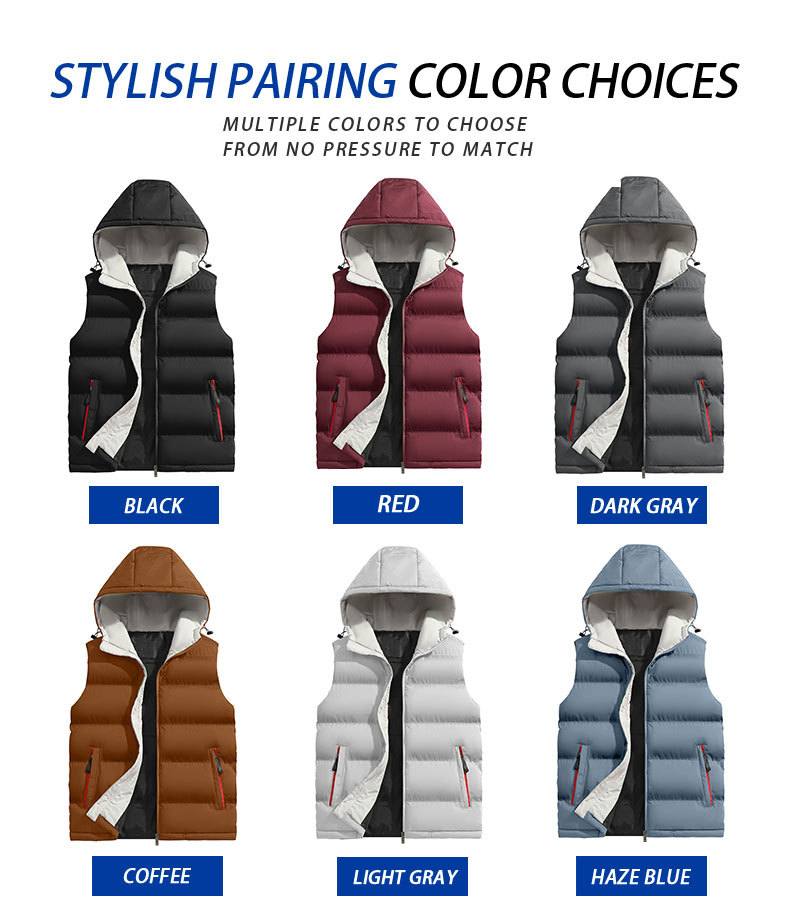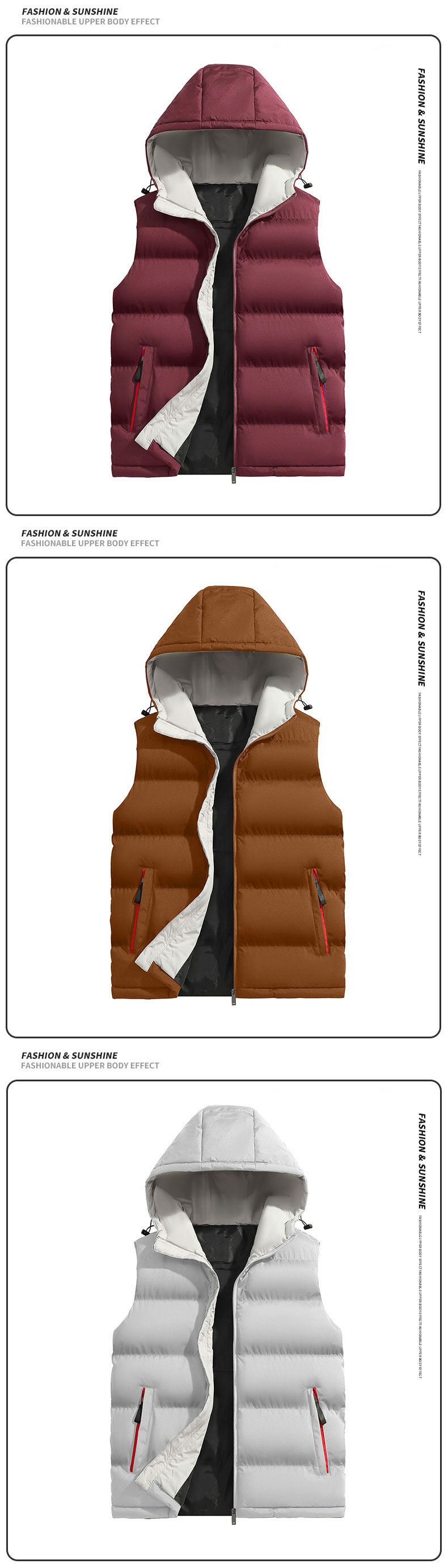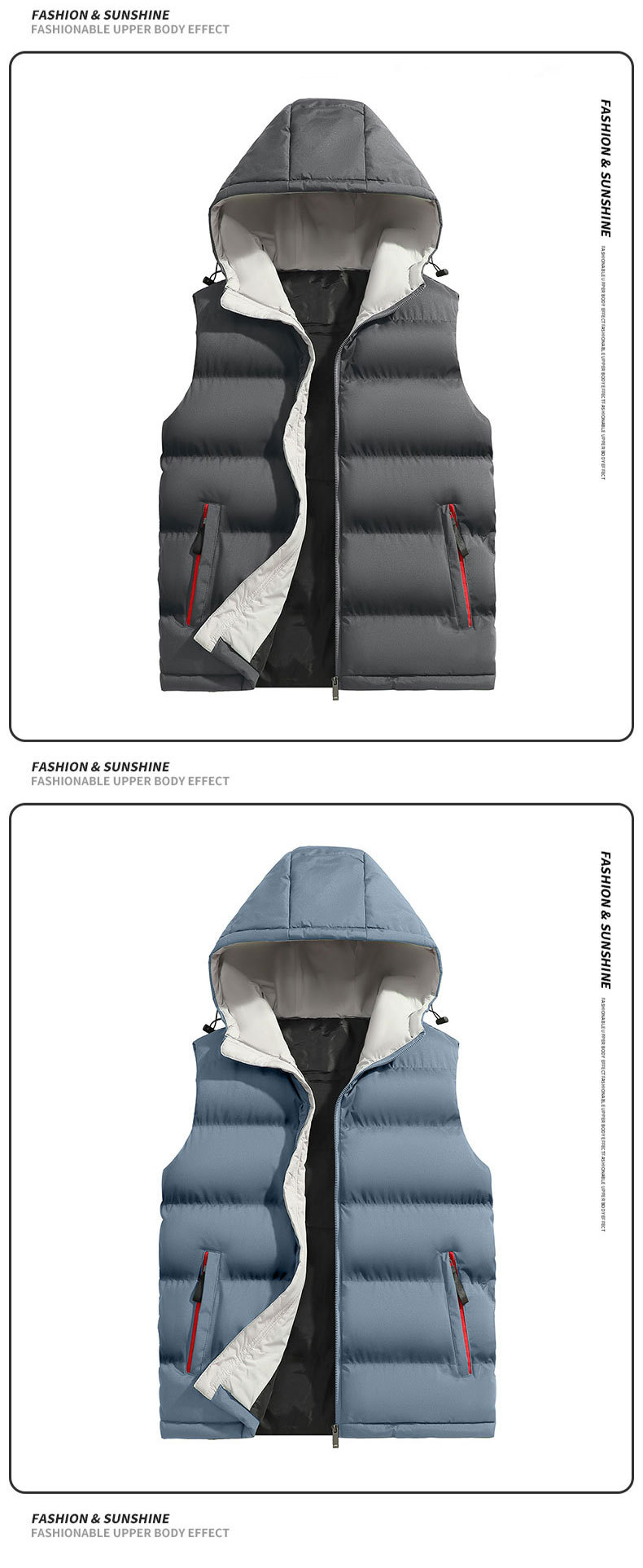 조끼 남자의 가을과 겨울 새로운 스포츠 캐주얼 후드 청소년 국경 단색 캐주얼 민소매 조끼