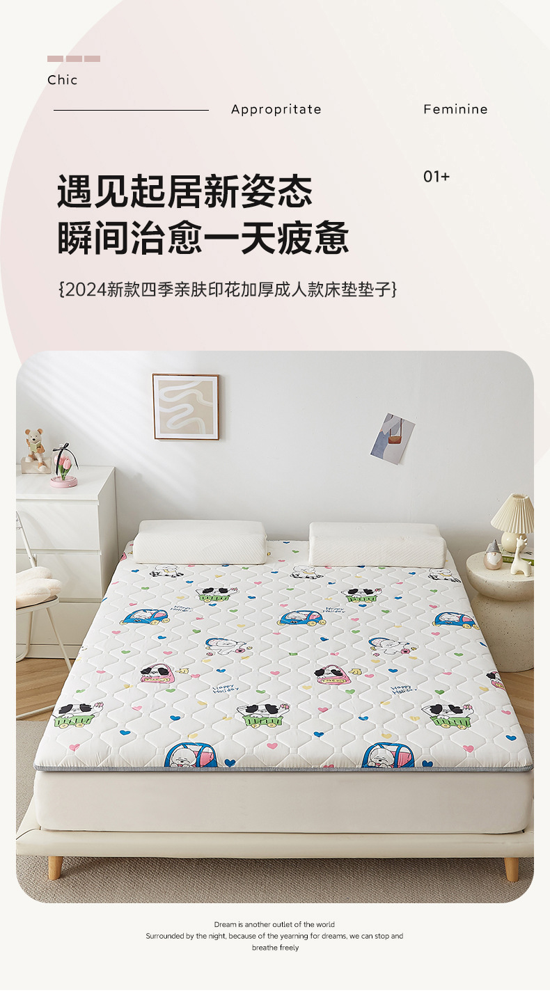 새로운 사계절 피부 친화적 인 인쇄 된 두꺼운 성인 매트리스 매트 등나무 매트 기숙사 학생 단일 두꺼운 매트리스