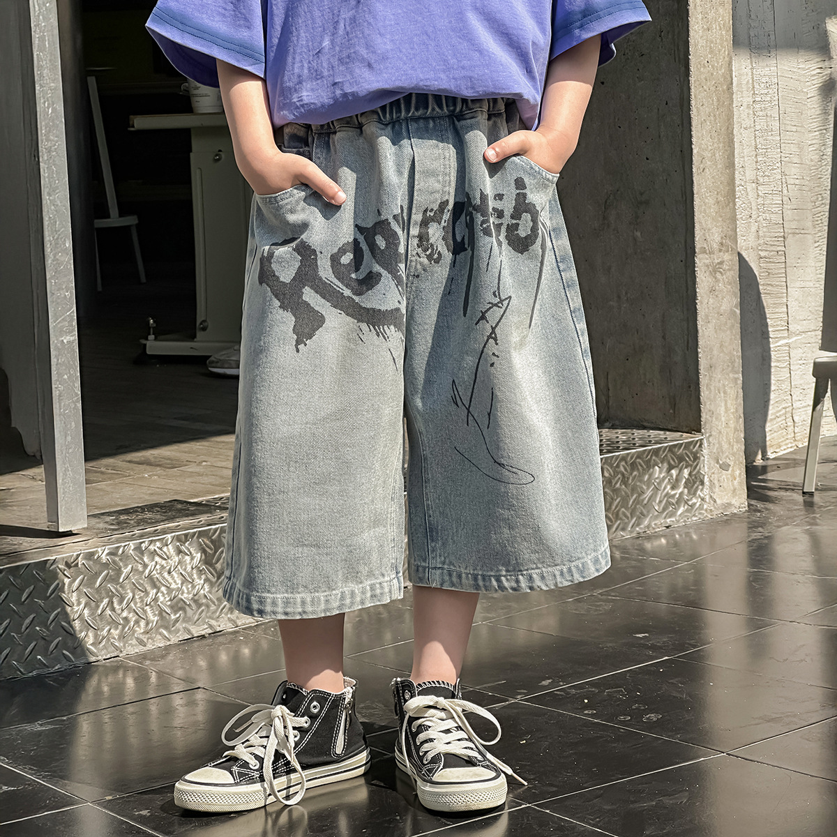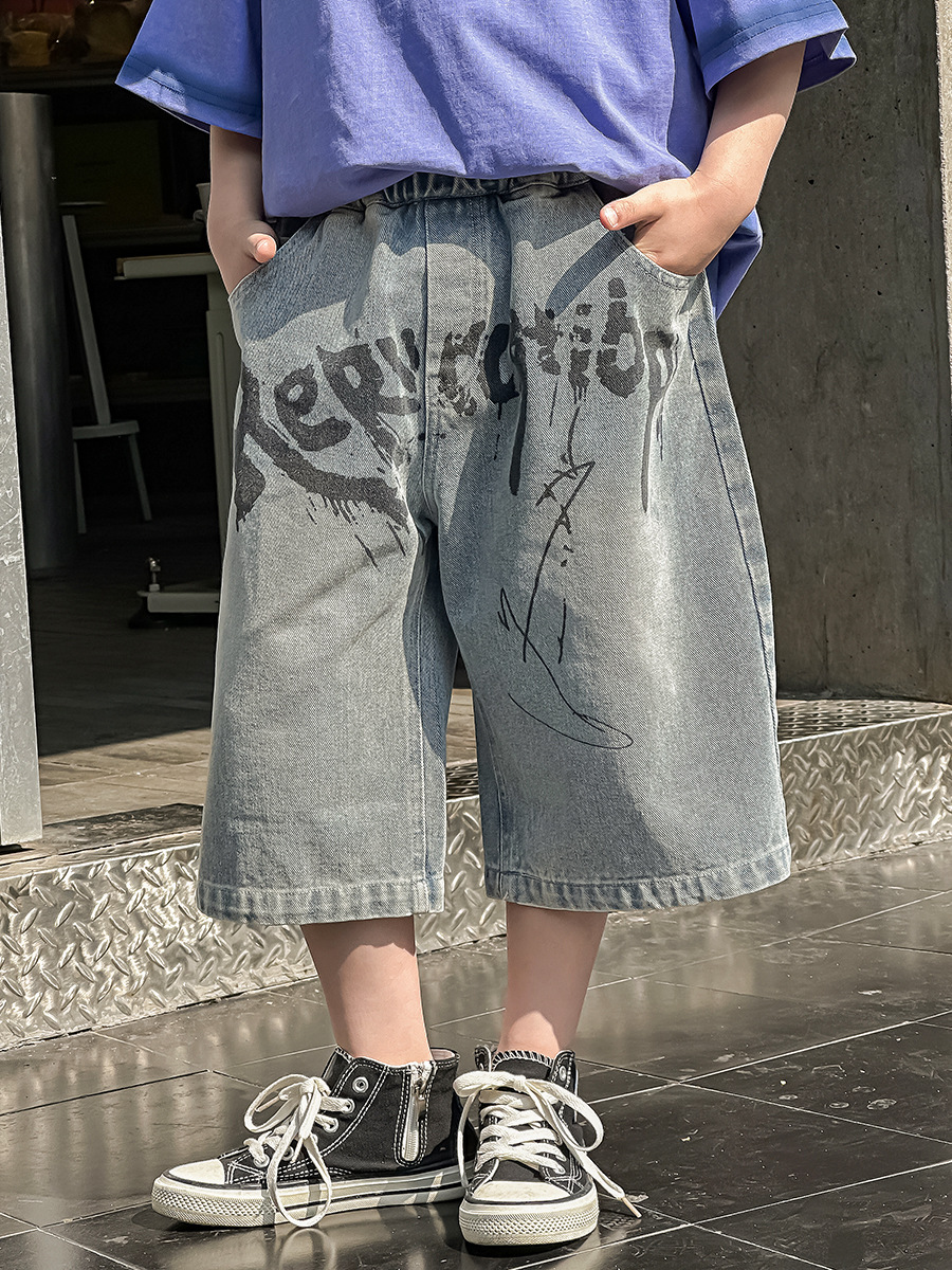 남아용 반바지 여름 아동 한국 스타일 2025 신상 데님 여름옷 5부 바지 아동복 트렌디하고 시원한 얇은 바지스토어 가기