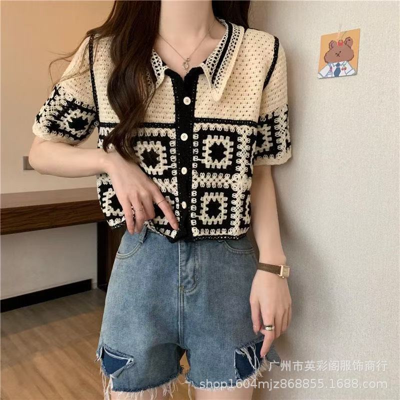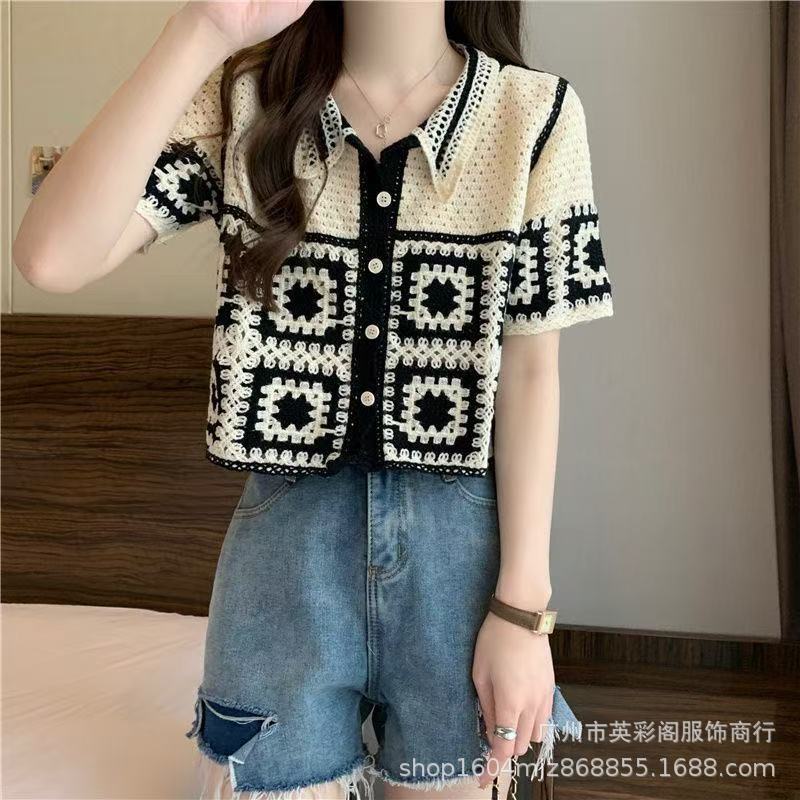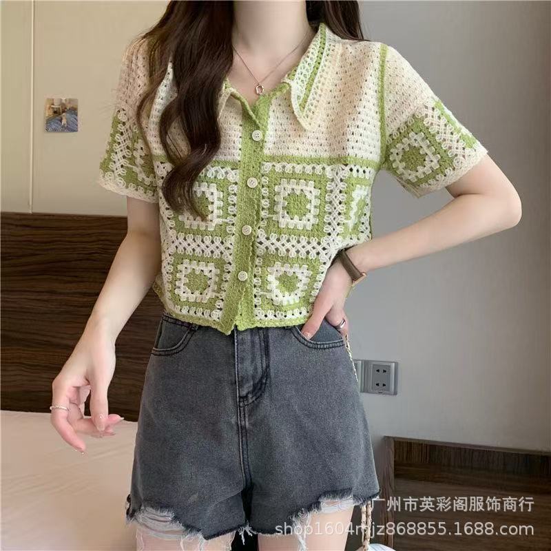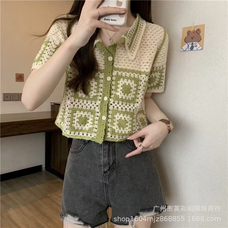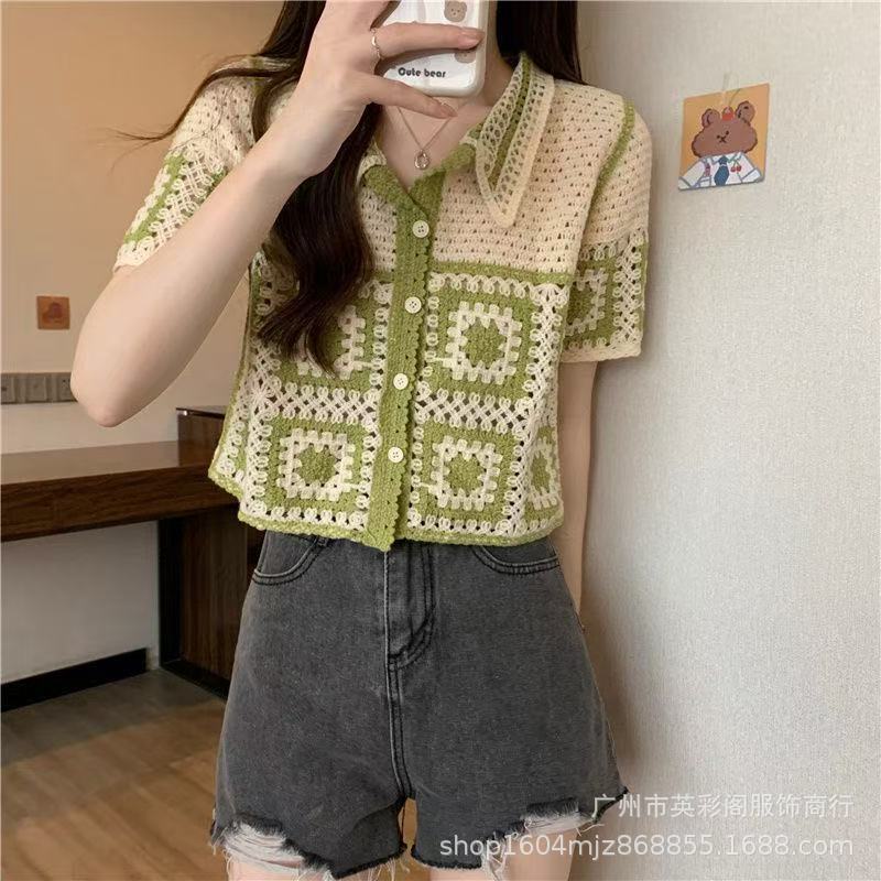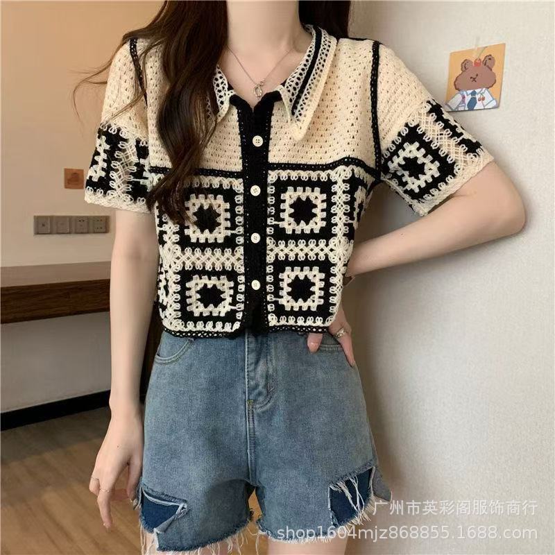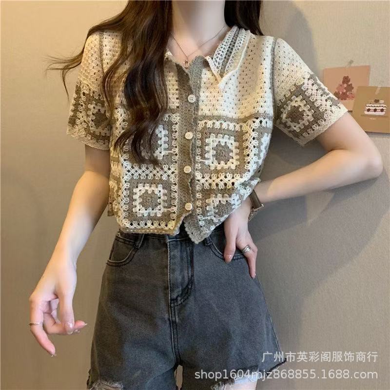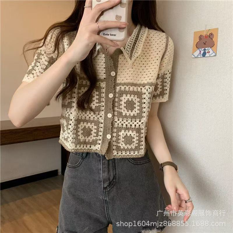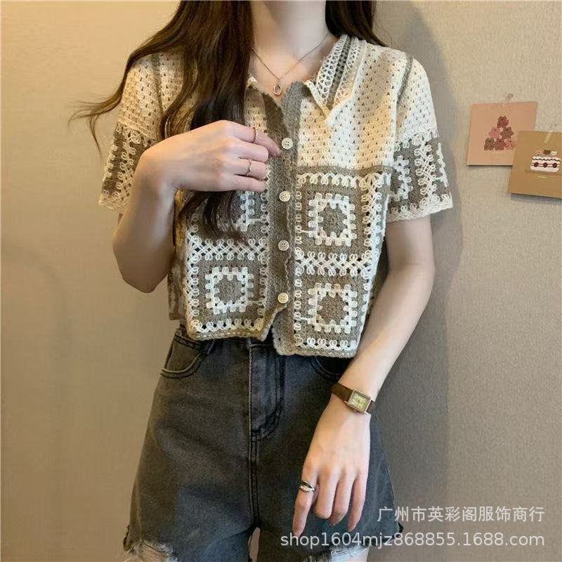 프랑스 스타일 서양식 크로 셰 뜨개질 할로우 여름 새로운 반팔 니트 카디건 여성 연령 감소 짧은 얇은 외투