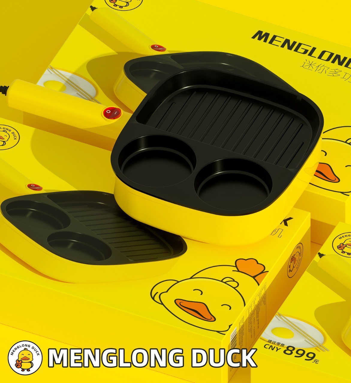 작은 노란색 오리 아침 식사 기계 다기능 가정용 계란 토스트 빵 침 드라이버 샌드위치 기계 와플 튀김 기계 도매스토어 가기