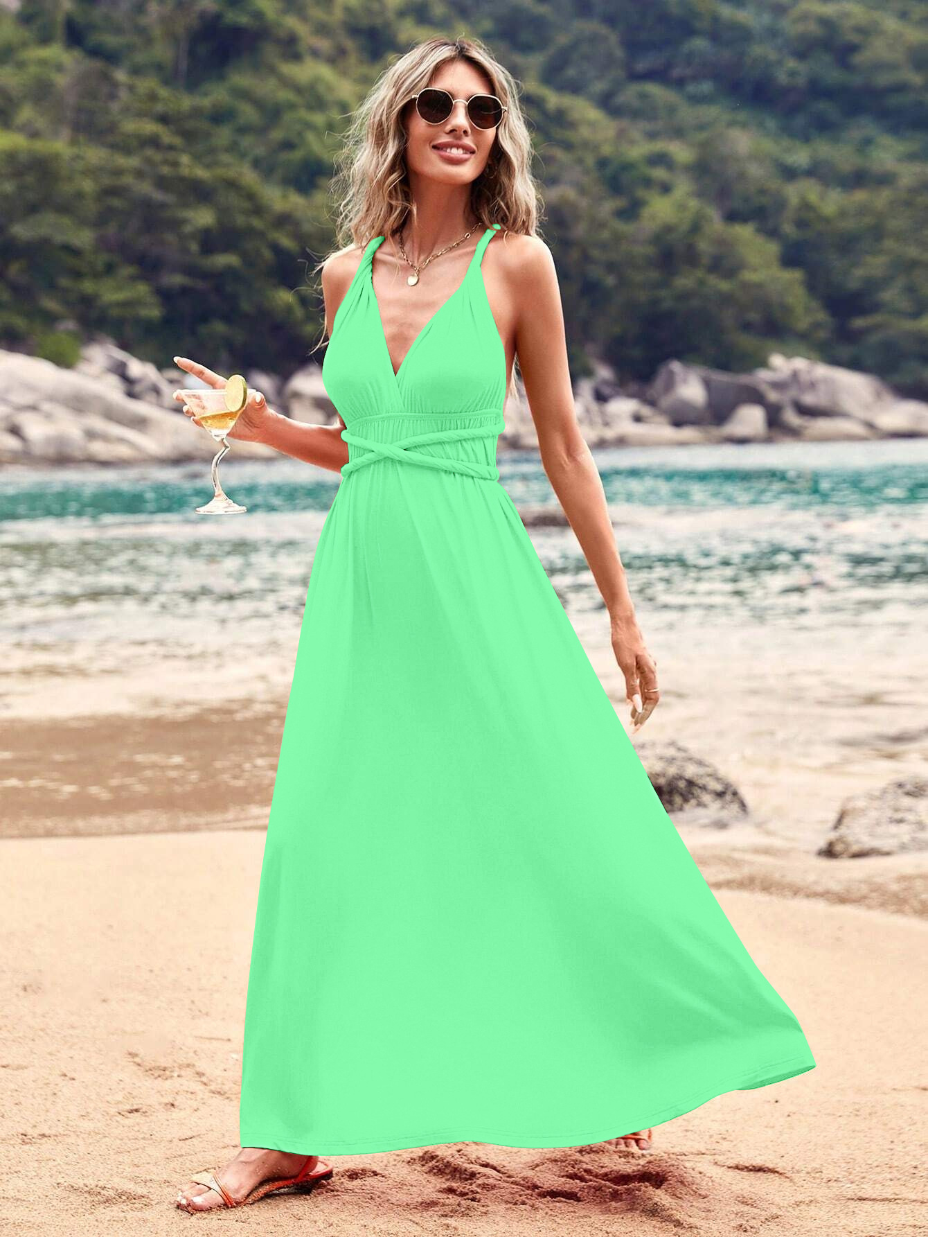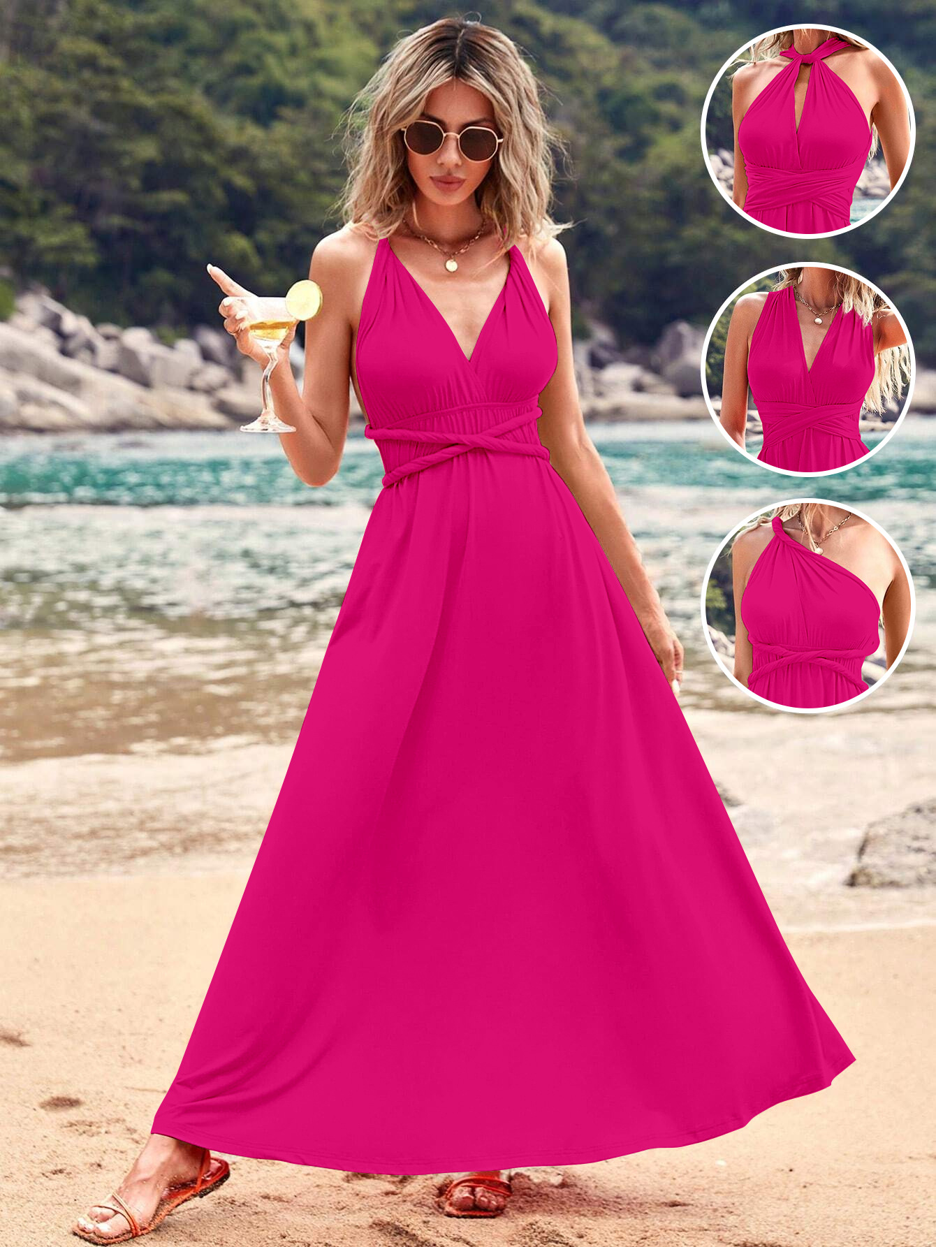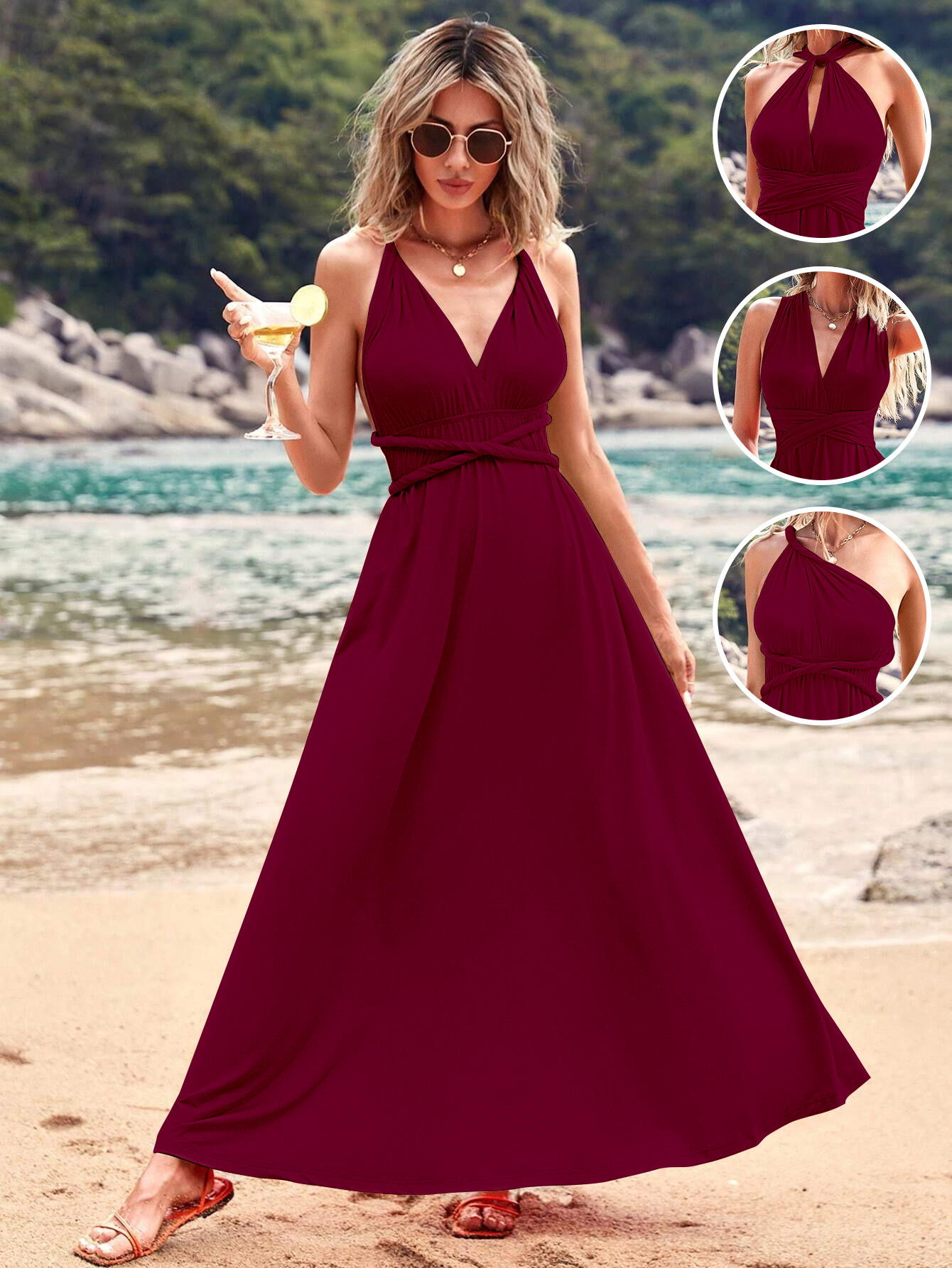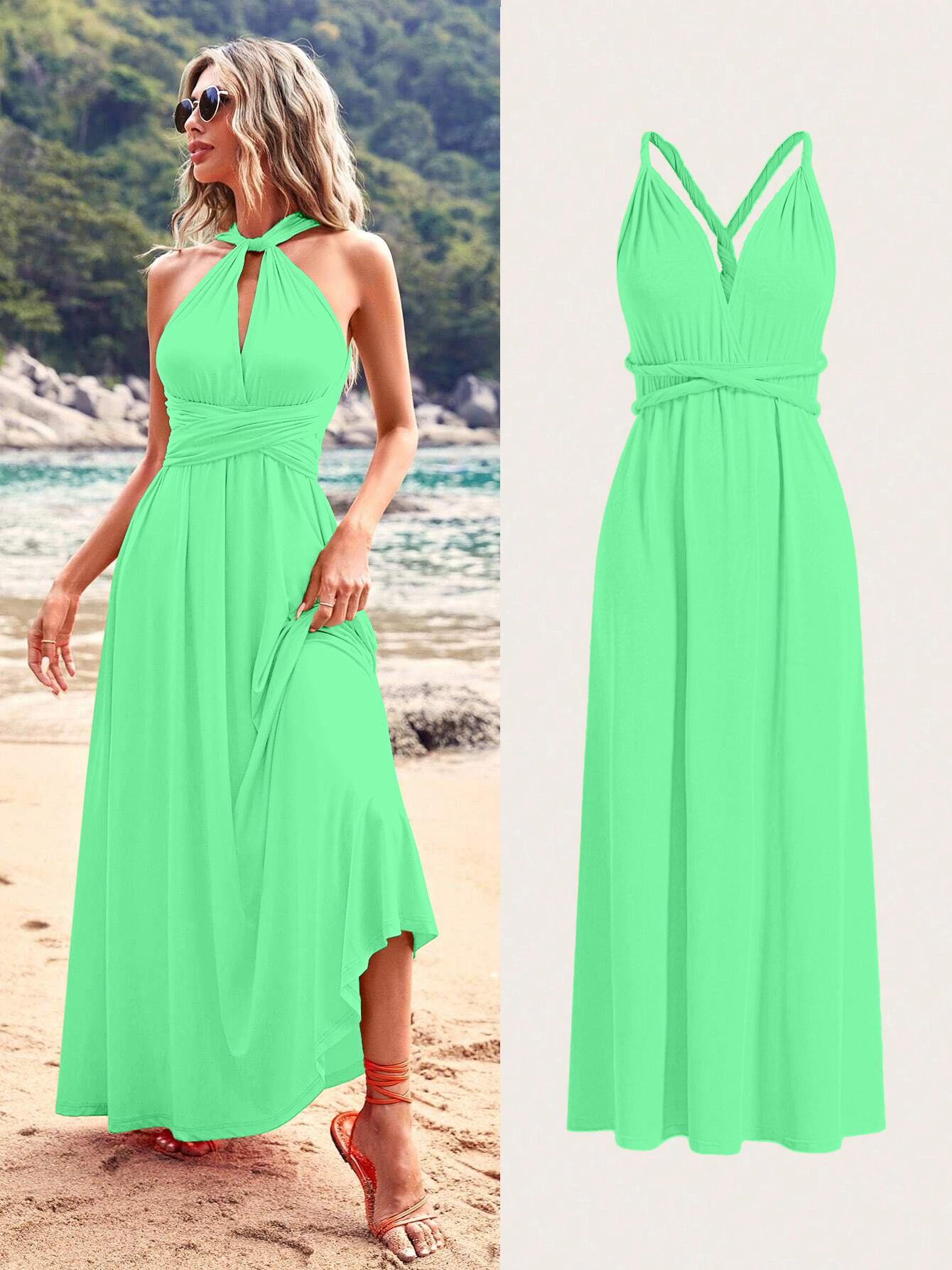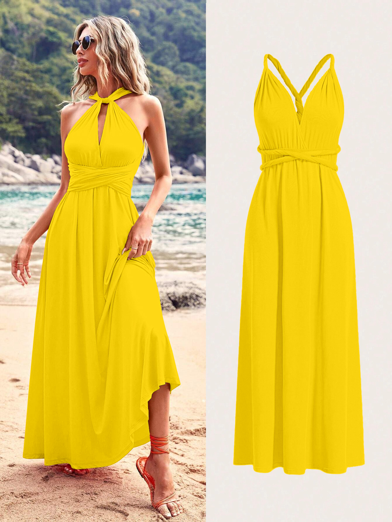 아마존 유럽과 미국의 폭발 멀티 웨어 멀티 로프 크로스 스트랩 백리스 섹시한 원피스 우아한 롱 원피스 원피스 원피스