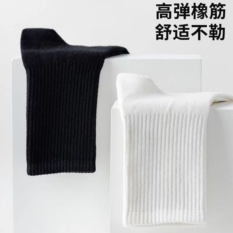 순면 흑백 중목 양말 남녀공용 단색 긴 양말 땀흡수 스포츠 면양말 순면 양말 도매 땀흡수 및 탈취 기능