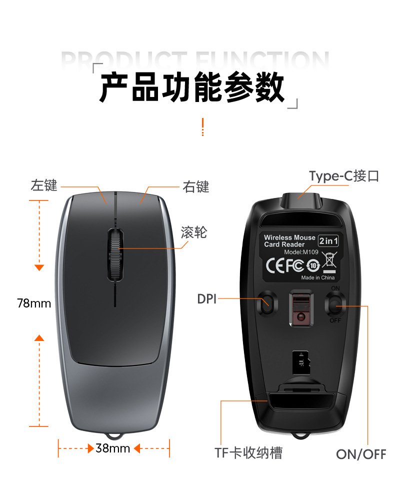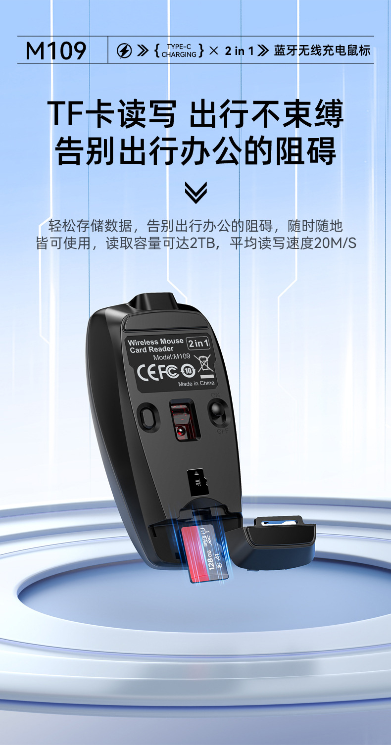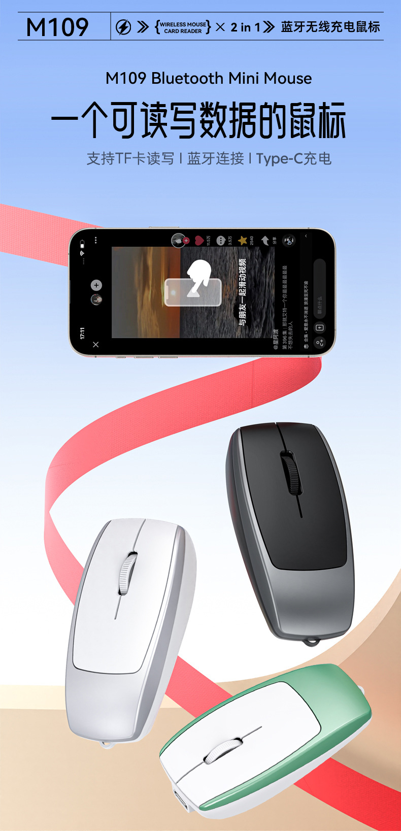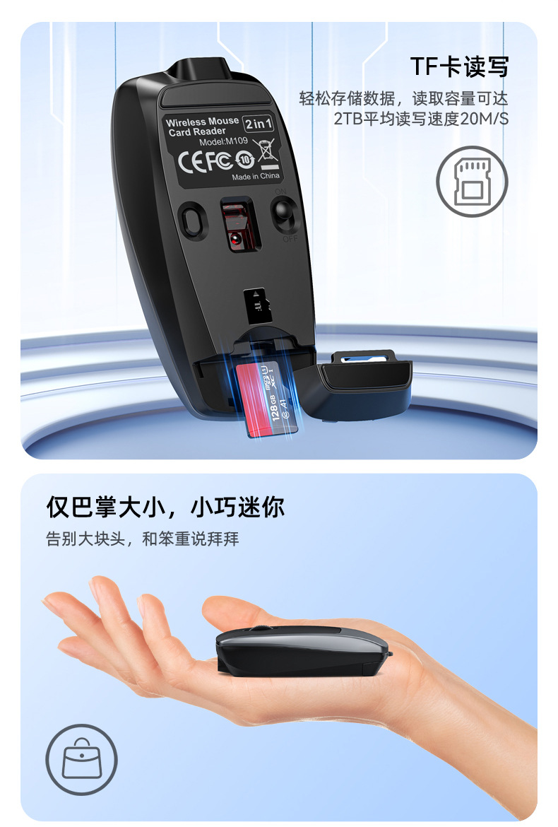 무소음 미니 블루투스 마우스, TF 카드 삽입 가능, 출장용 휴대용 충전식 카드 리더기, 마우스 선물, 제조사 재고 있음