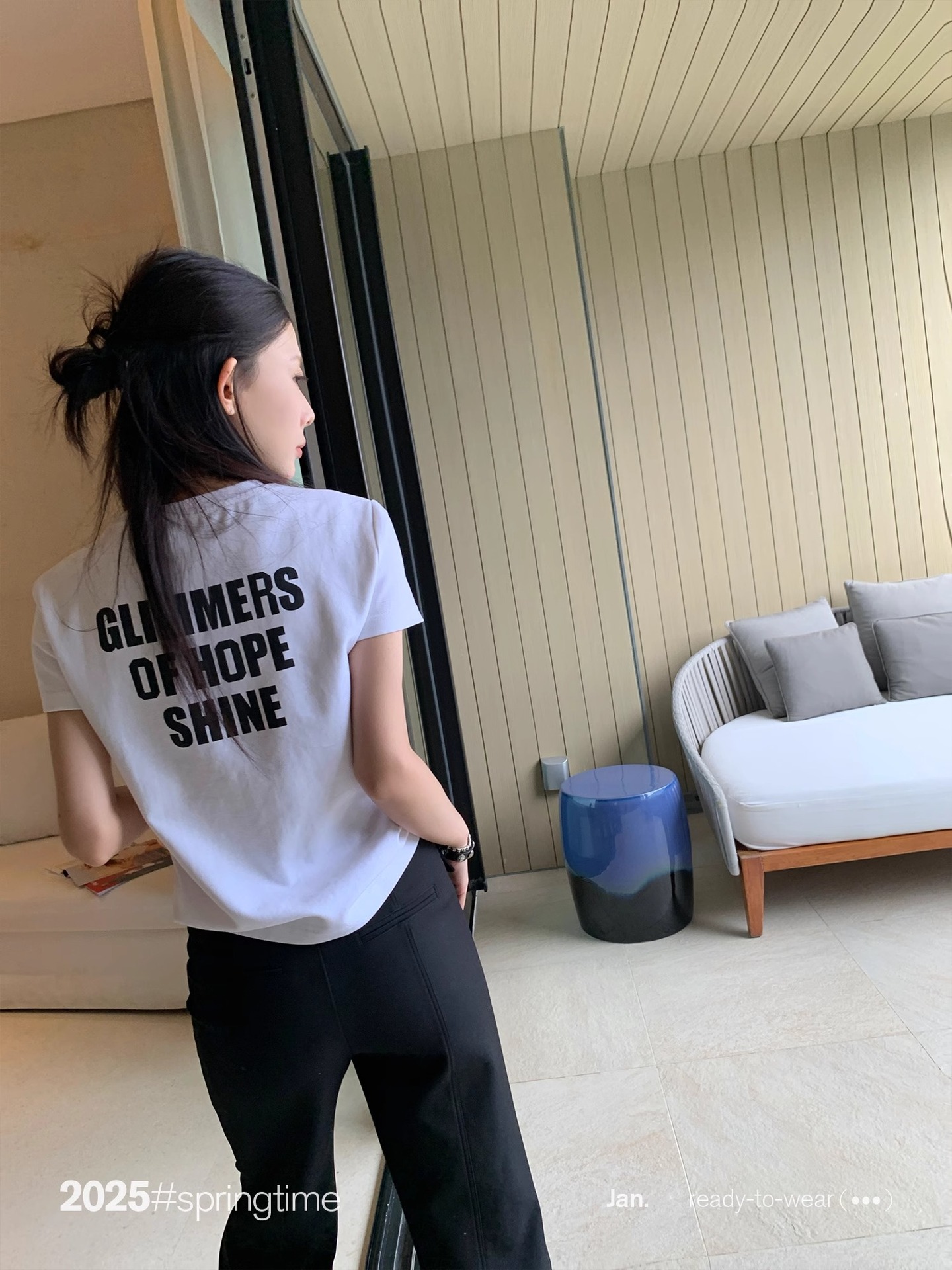 새로운 2025 여름 편지 인쇄 된 어깨 티셔츠 여성용 둥근 목 간단한 슬림 핏 슬리밍 쇼트 탑 여성용 한국식스토어 가기