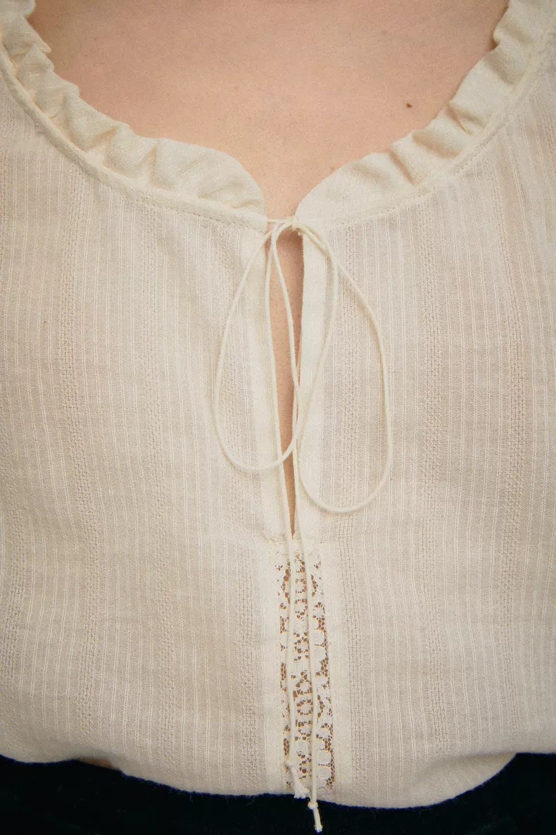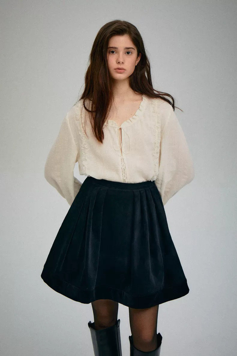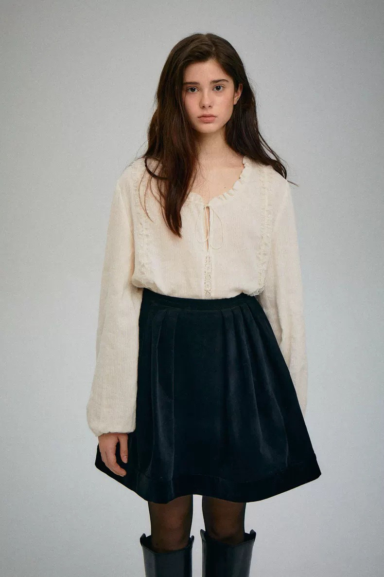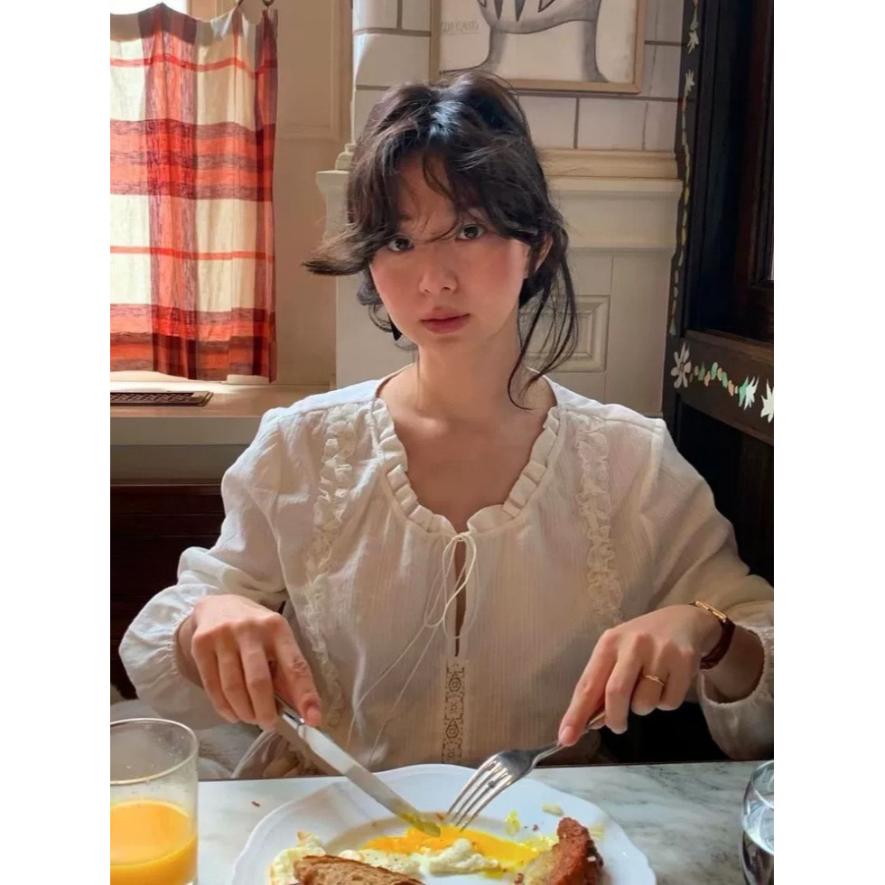 2025년 봄 신상 한국 동대문 f*rven 스타일 단색 레이스 끈 달린 달콤한 셔츠