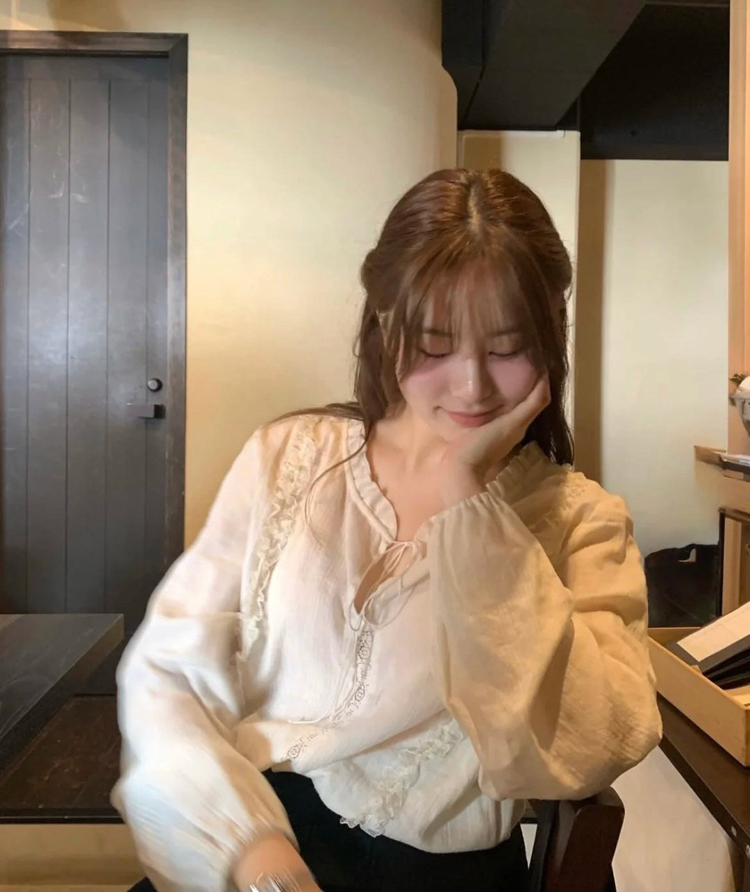2025년 봄 신상 한국 동대문 f*rven 스타일 단색 레이스 끈 달린 달콤한 셔츠스토어 가기