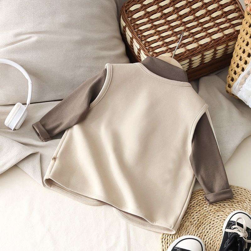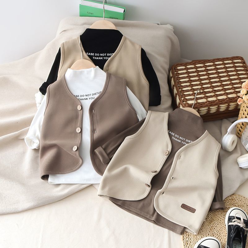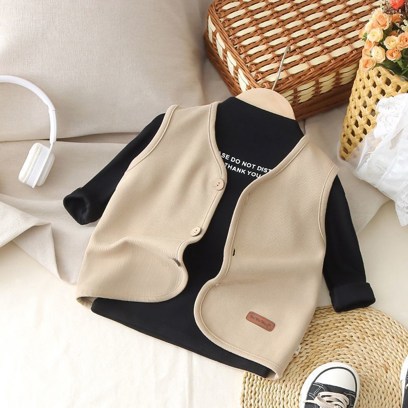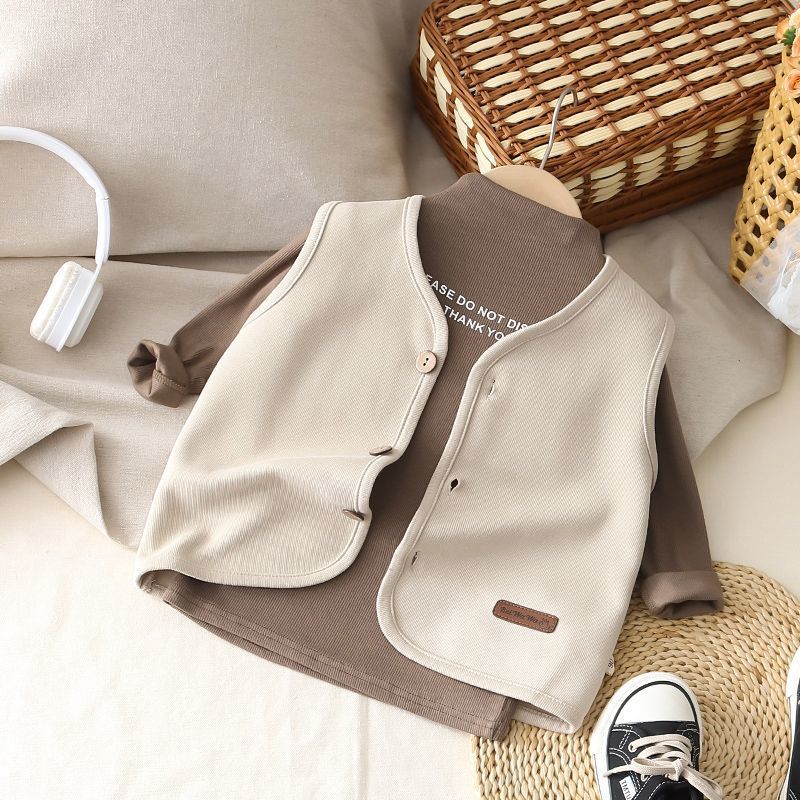 아동복 봄과 가을 새 소년 아기 서양식 양복 조끼 어린이 레저 올 매치 단색 외부 조끼 조수