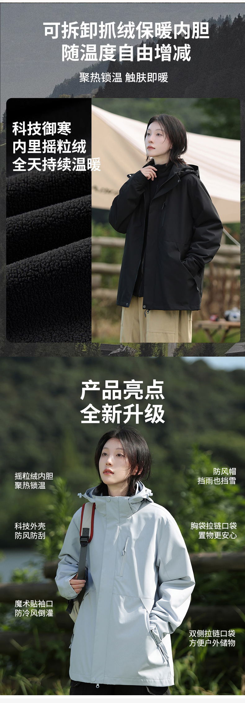 남녀 3 대 1 재킷 2024 그래핀 플리스 방수 야외 가을 및 겨울 재킷 등산 세트스토어 가기