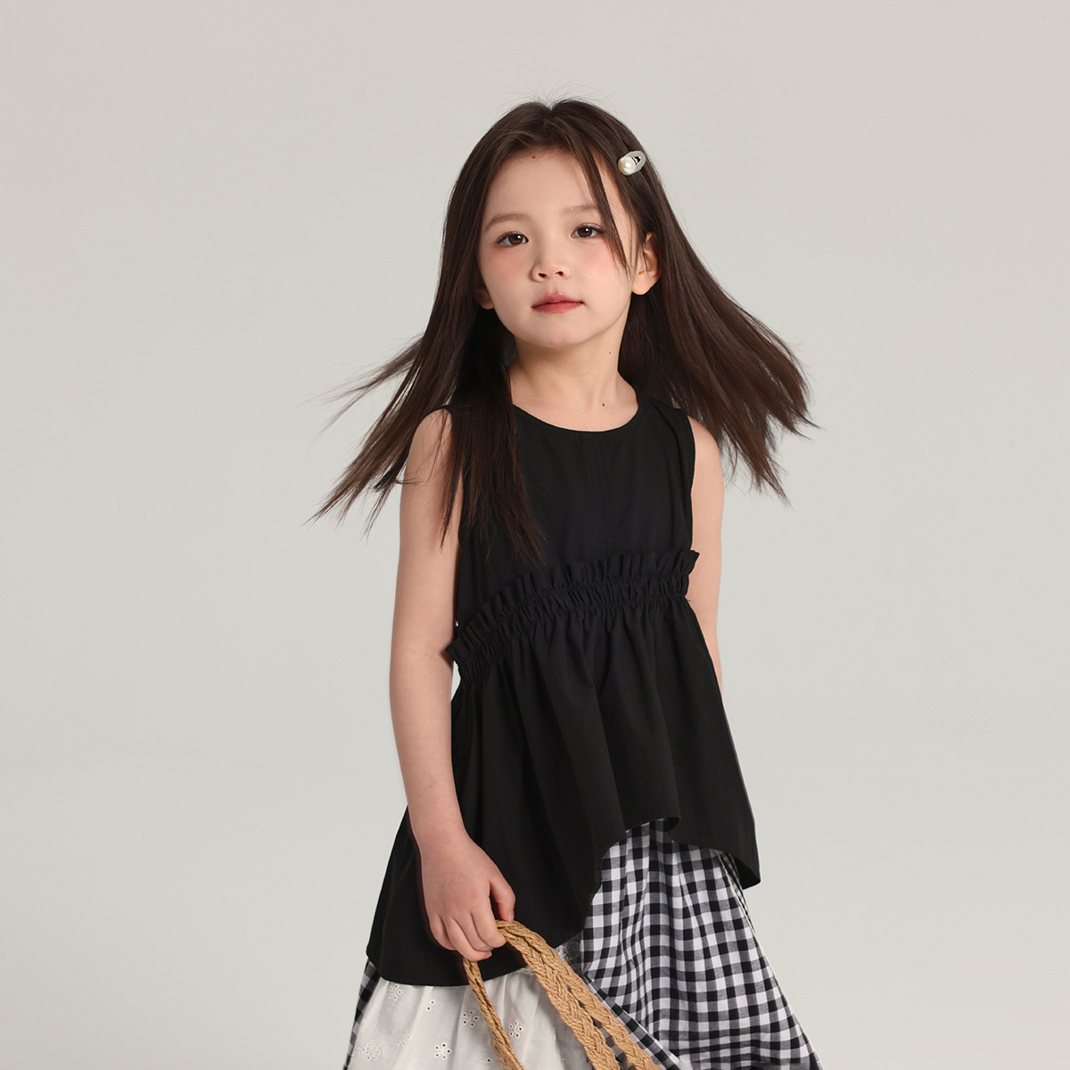 푸딩 하루 여름 디자인 최고 소녀 단색 기질 민소매 조끼 2025 새로운 어린이 조끼스토어 가기