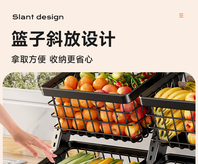 주방 보관 선반 바닥 다층 야채 및 과일 다기능 야채 바구니 거실 스낵 보관 선반