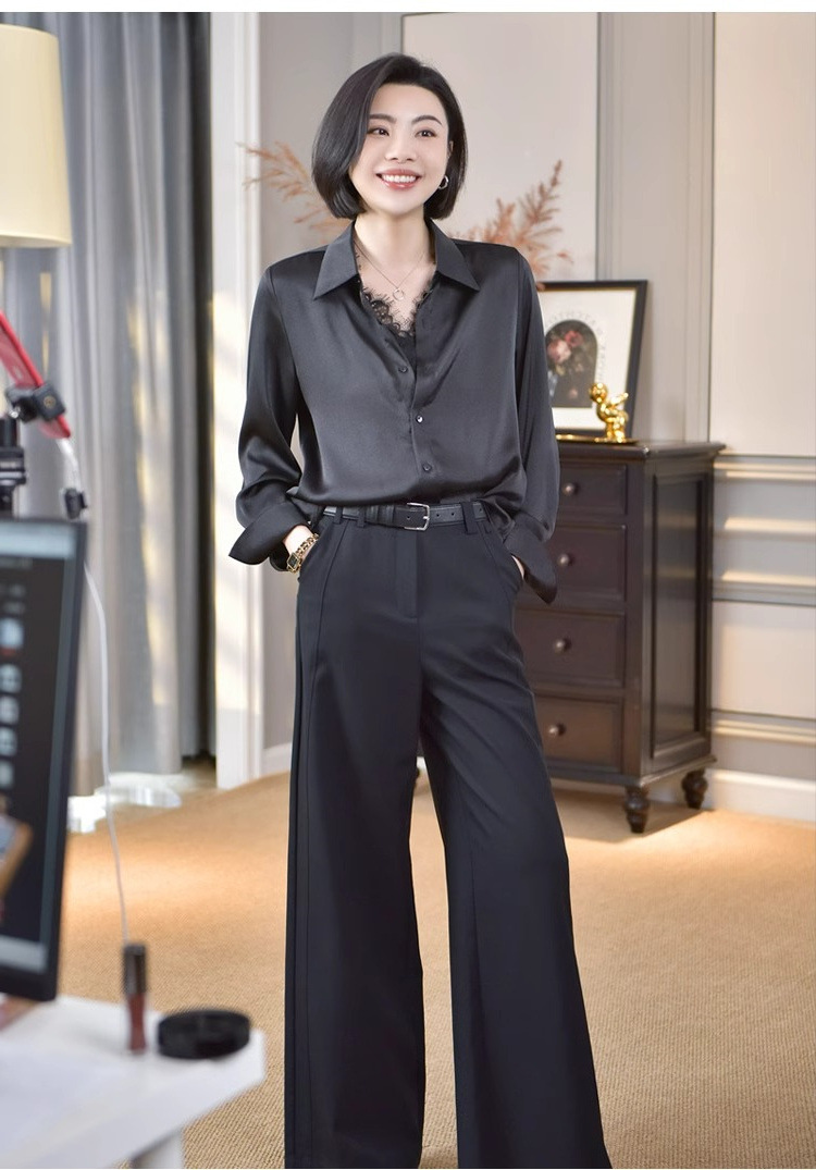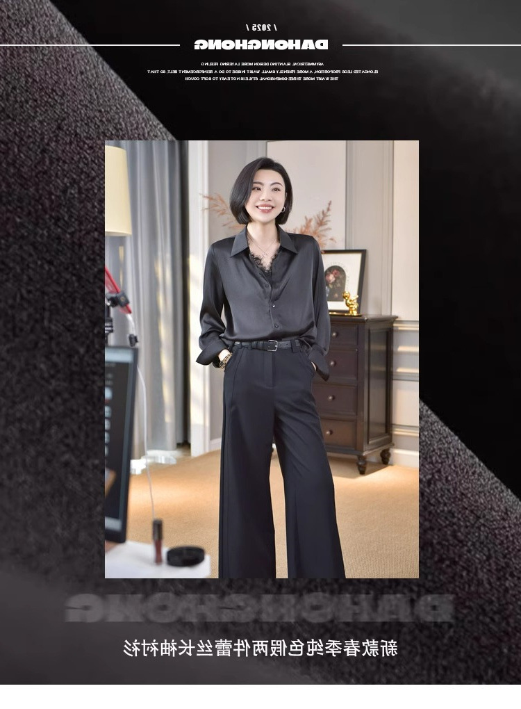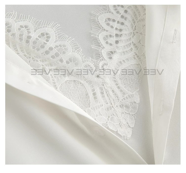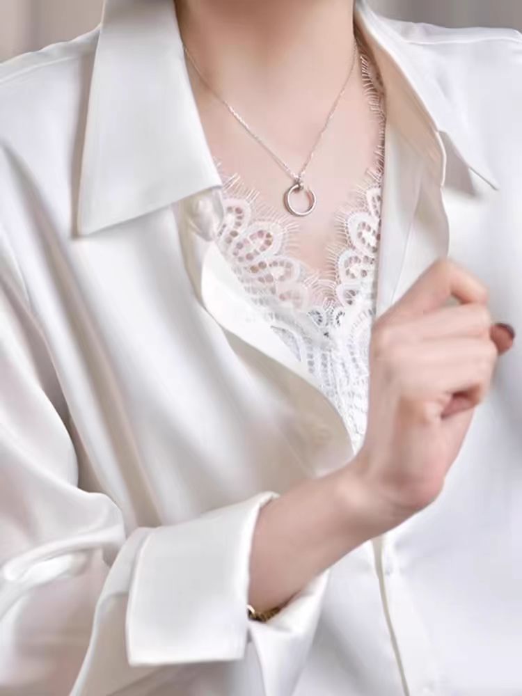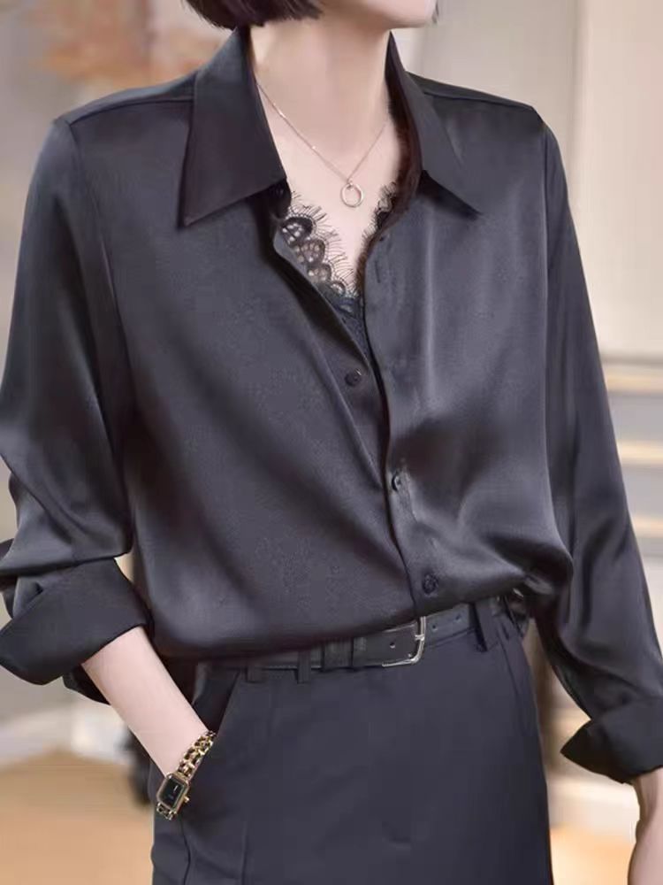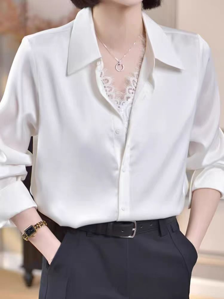 유럽 하이 엔드 가짜 투피스 레이스 스티칭 싱글 브레스트 폴로 칼라 라이닝 통근 긴 소매 2025 새로운 스타일 셔츠스토어 가기