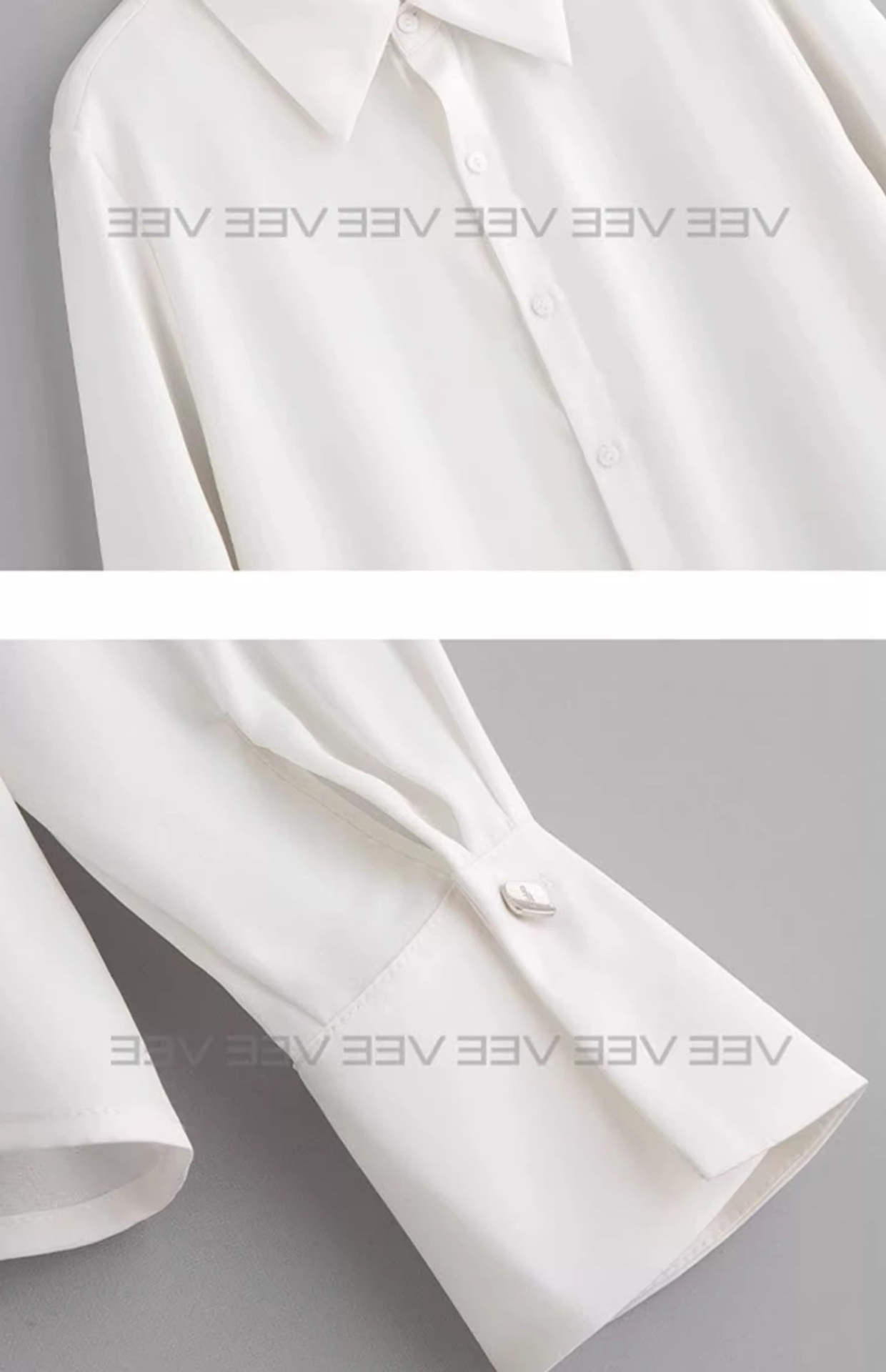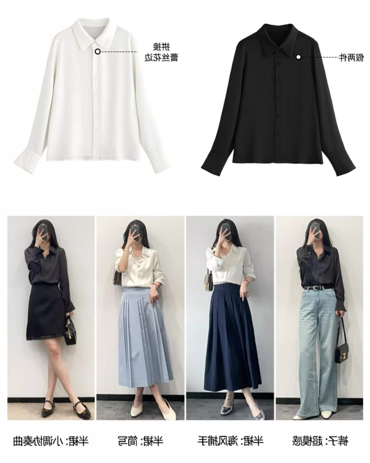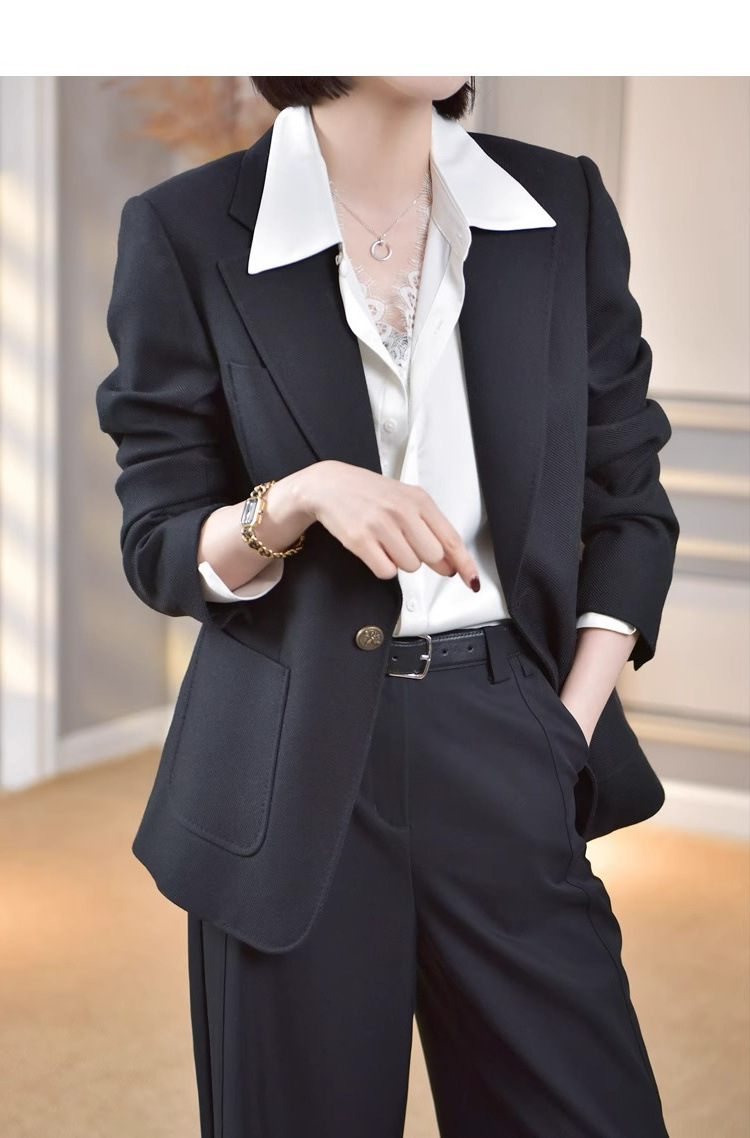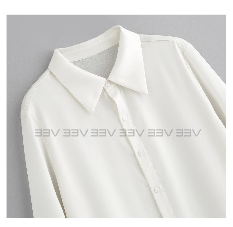 유럽 하이 엔드 가짜 투피스 레이스 스티칭 싱글 브레스트 폴로 칼라 라이닝 통근 긴 소매 2025 새로운 스타일 셔츠스토어 가기