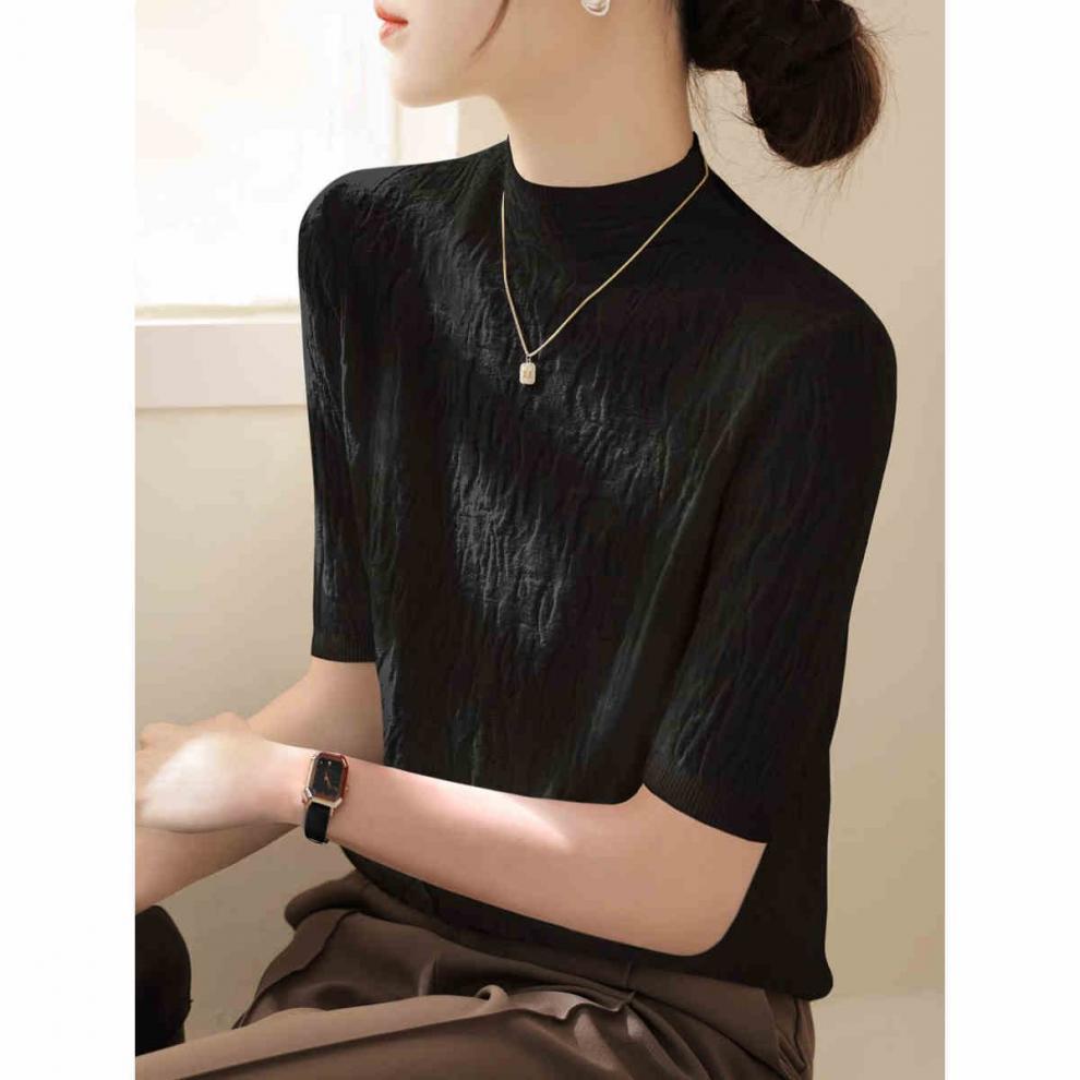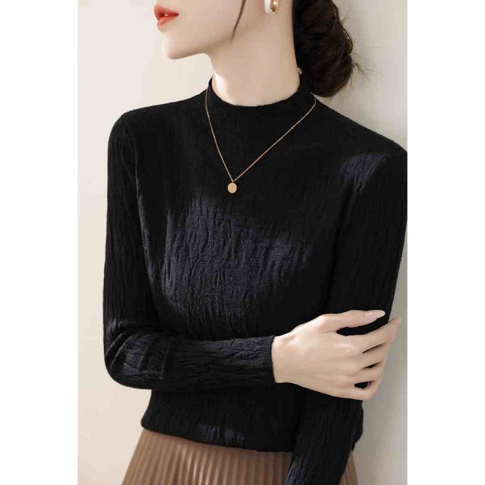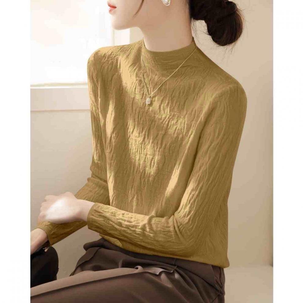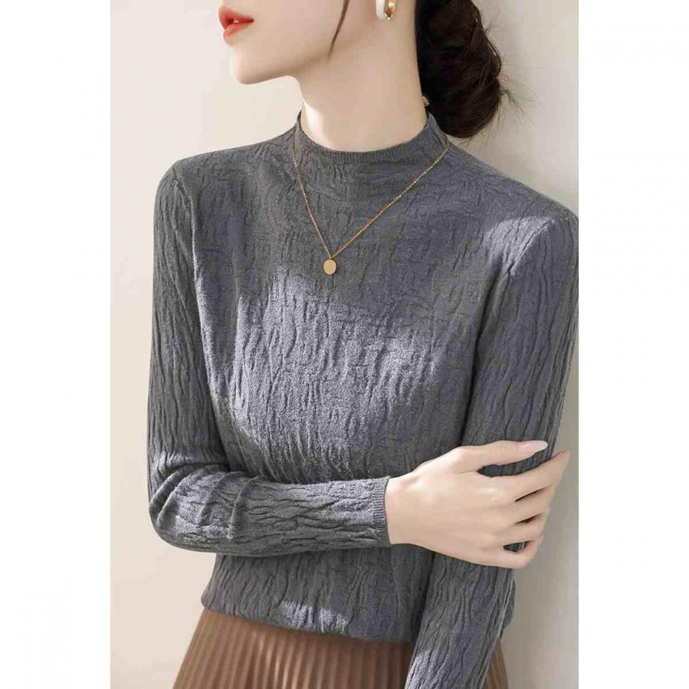 반 높은 목 반 소매 내부 니트 베이스 셔츠 스웨터 여성의 봄과 가을 2025 새로운 하이 엔드 어깨 재킷 얇은스토어 가기