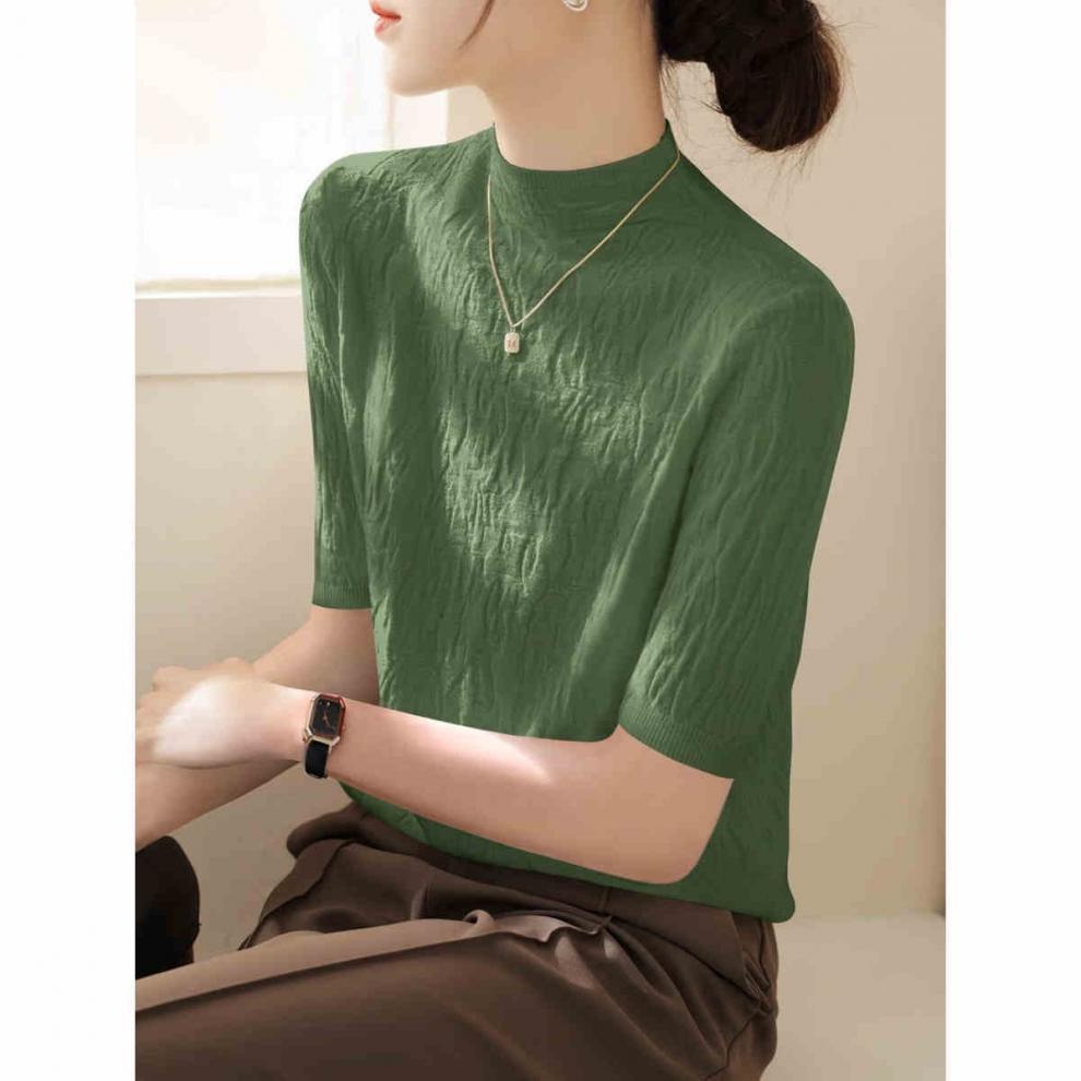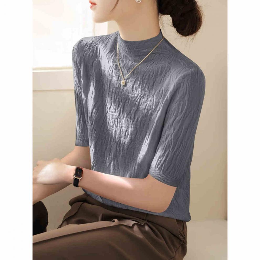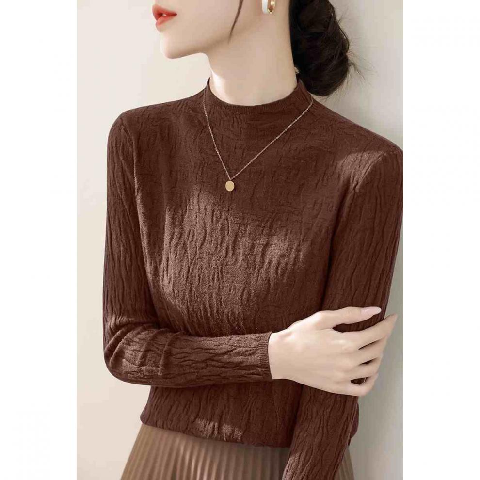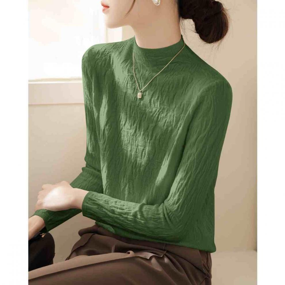 반 높은 목 반 소매 내부 니트 베이스 셔츠 스웨터 여성의 봄과 가을 2025 새로운 하이 엔드 어깨 재킷 얇은스토어 가기