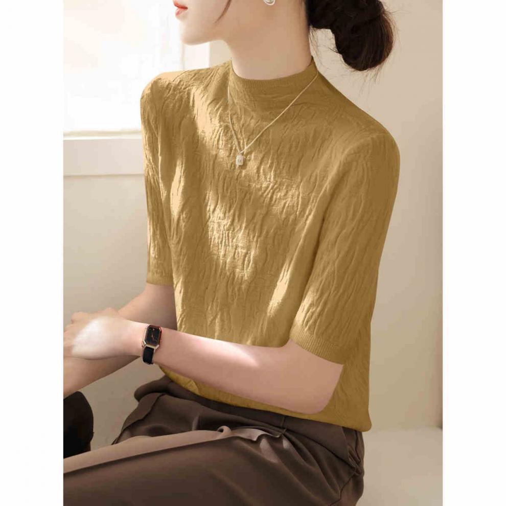 반 높은 목 반 소매 내부 니트 베이스 셔츠 스웨터 여성의 봄과 가을 2025 새로운 하이 엔드 어깨 재킷 얇은