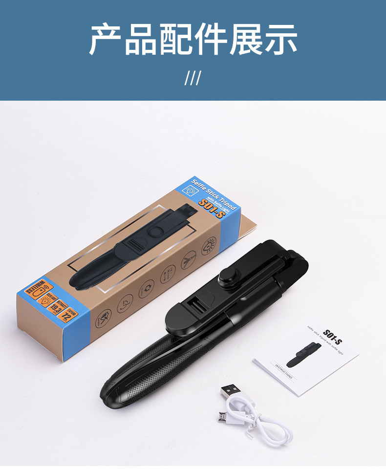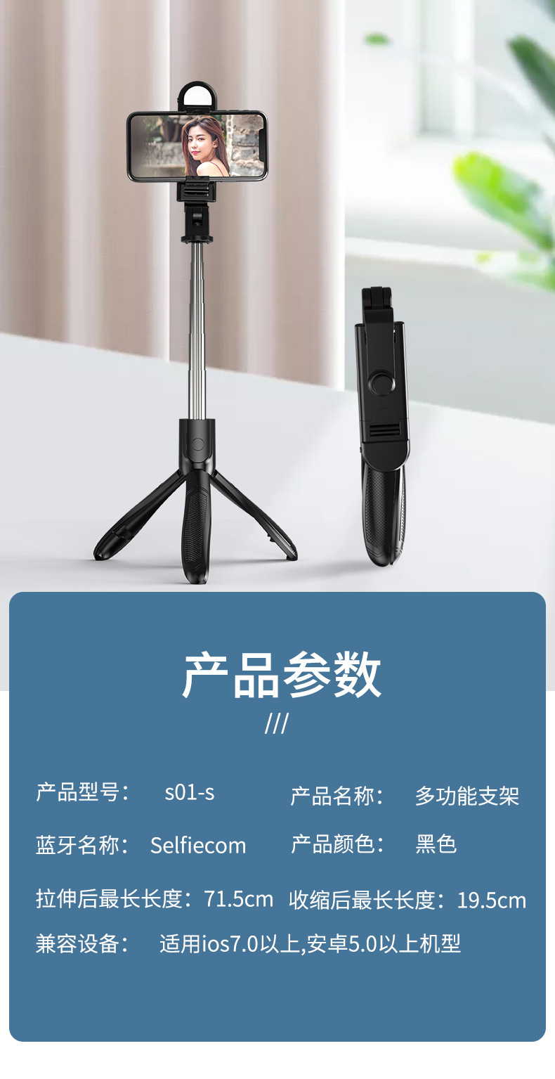 • S01S 블랙 [71.5cm 스테인리스 튜브 셀카봉 + 블루투스 리모컨]