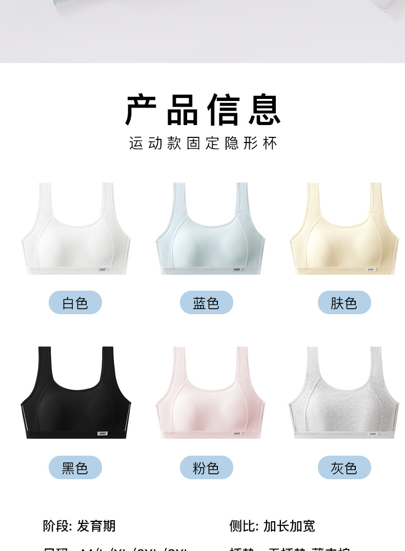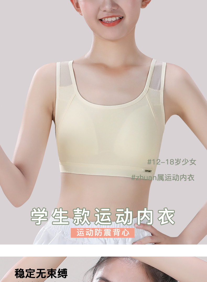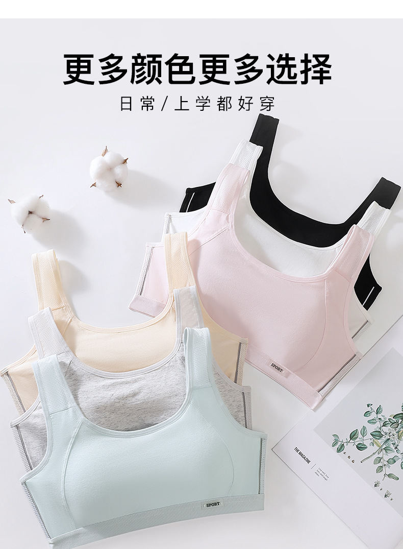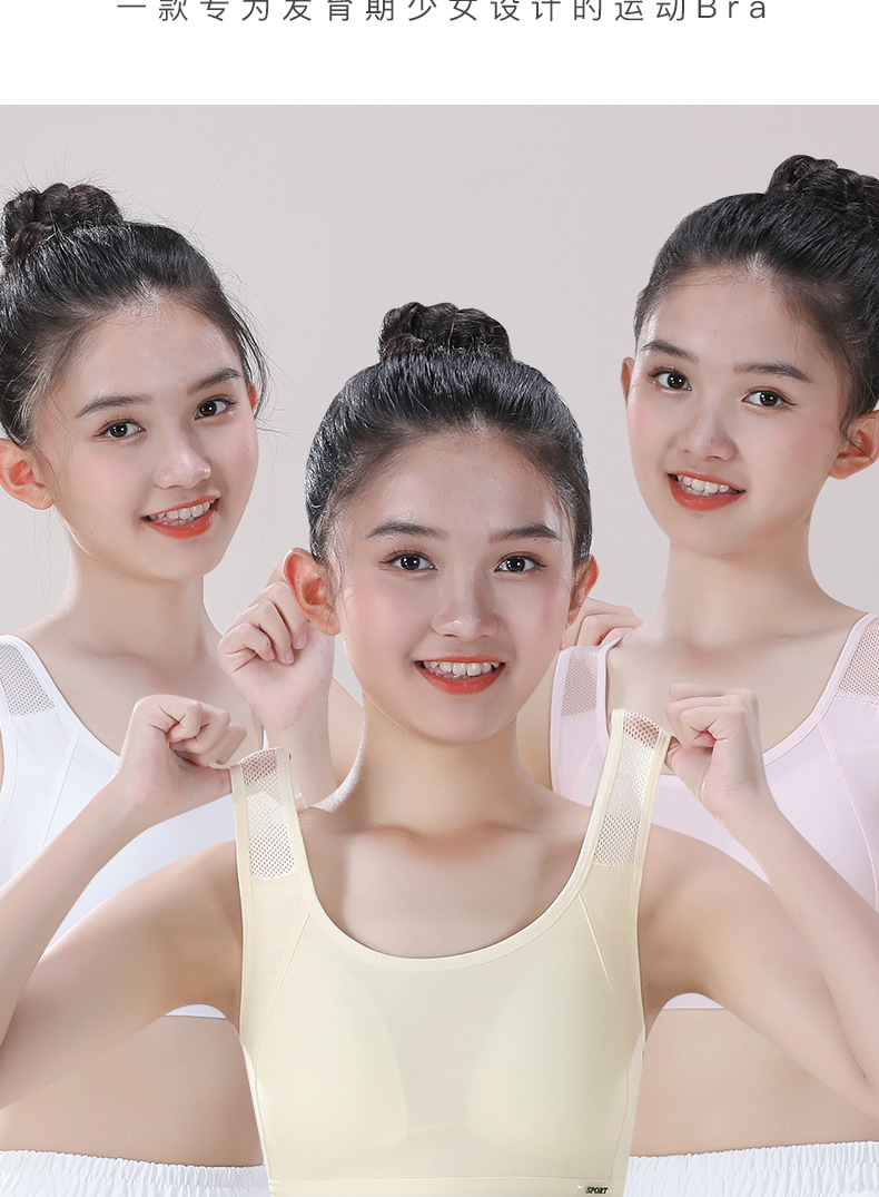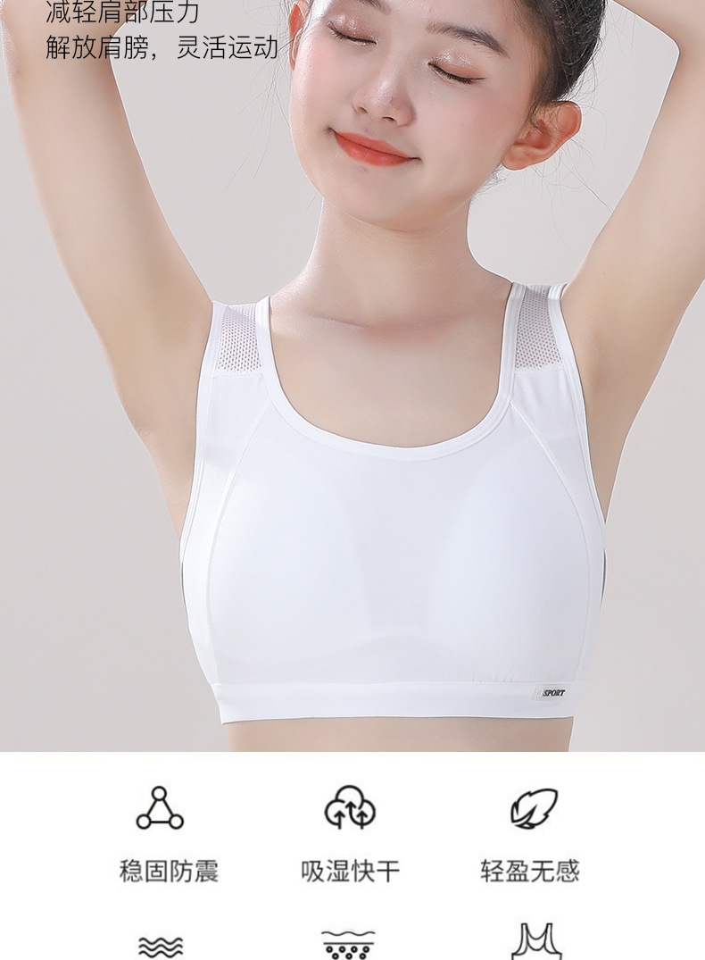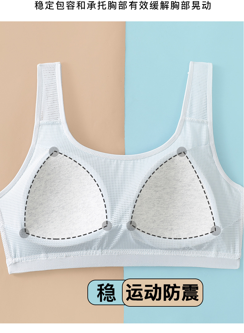 소녀 속옷 학생 면화 스포츠 조끼 다시 통기성 메쉬 디자인 사춘기 소녀 브라