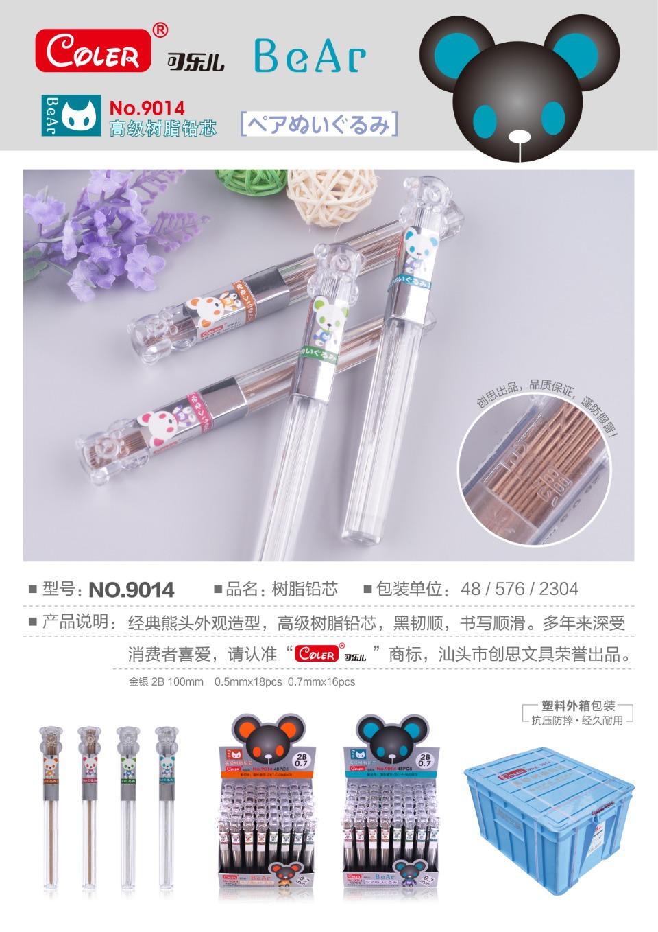 Chuangsi 9014 자동 리드 새로운 귀여운 교체 연필 리드 튜브 곰 머리 수지 자동 리드