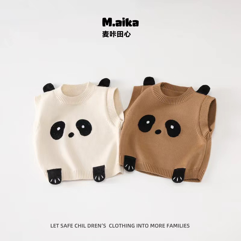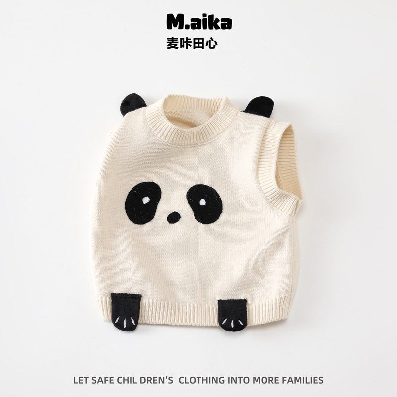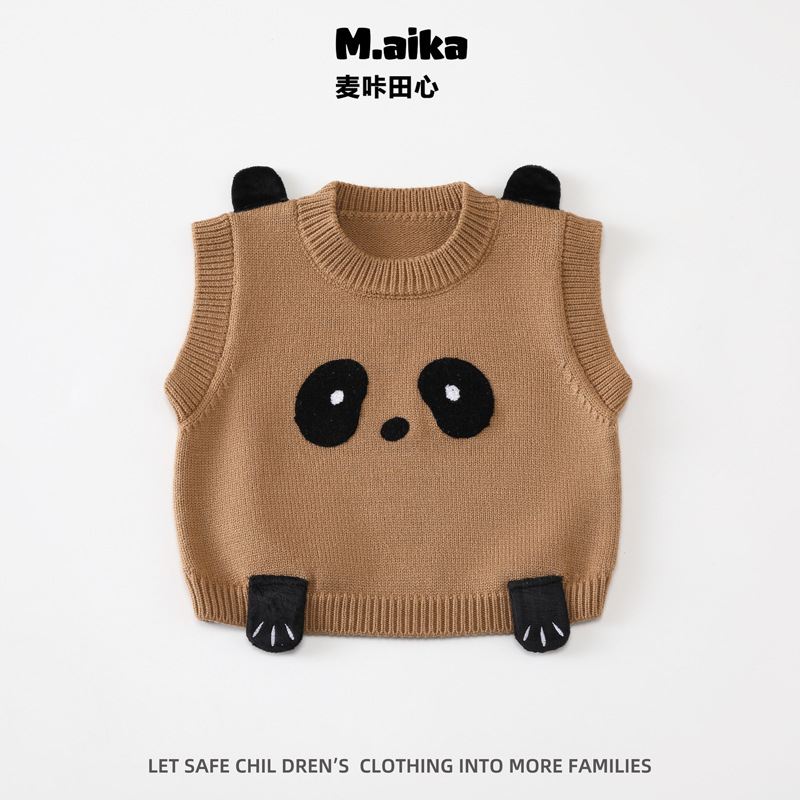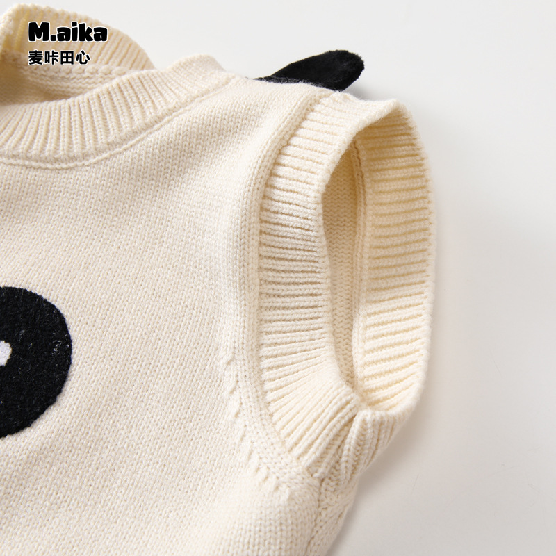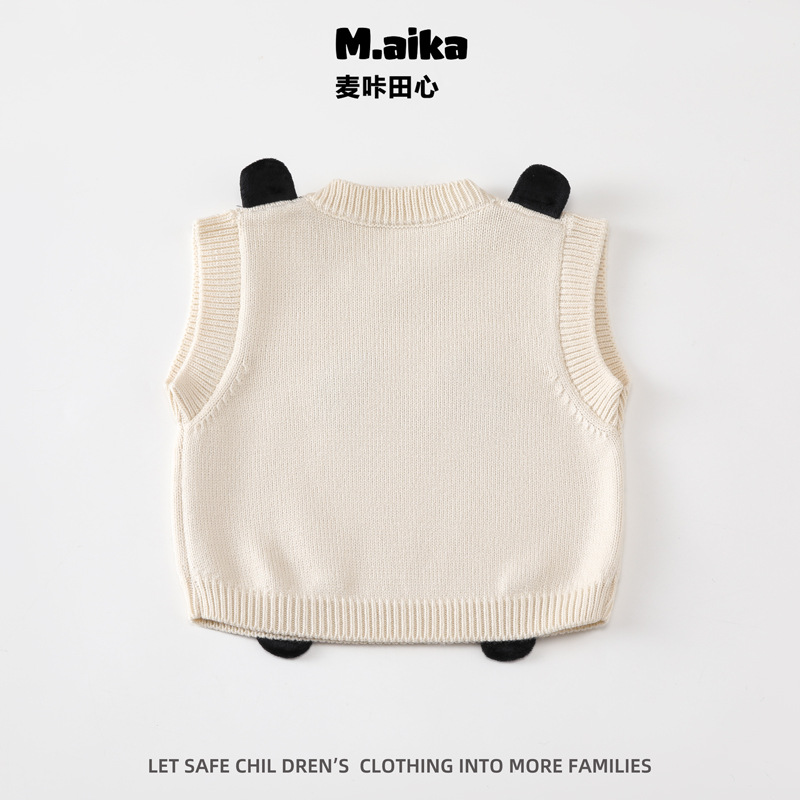 C07 어린이 조끼 아기의 조끼 봄과 가을 새로운 외부는 소년과 소녀를위한 귀여운 곰 니트 조끼 스웨터를 착용하십시오.