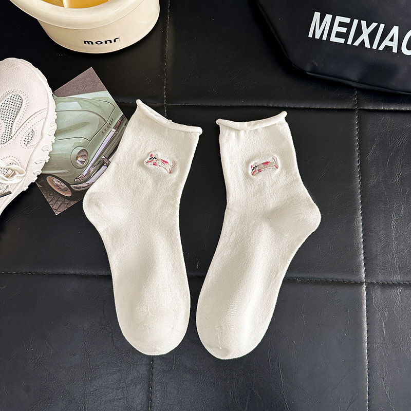 봄 새로운 닥스 훈트 개 양말 여성용 화이트 컬 미드 튜브 양말 강아지 귀여운 아카데믹 스타일 올 매치 JK 더미 양말