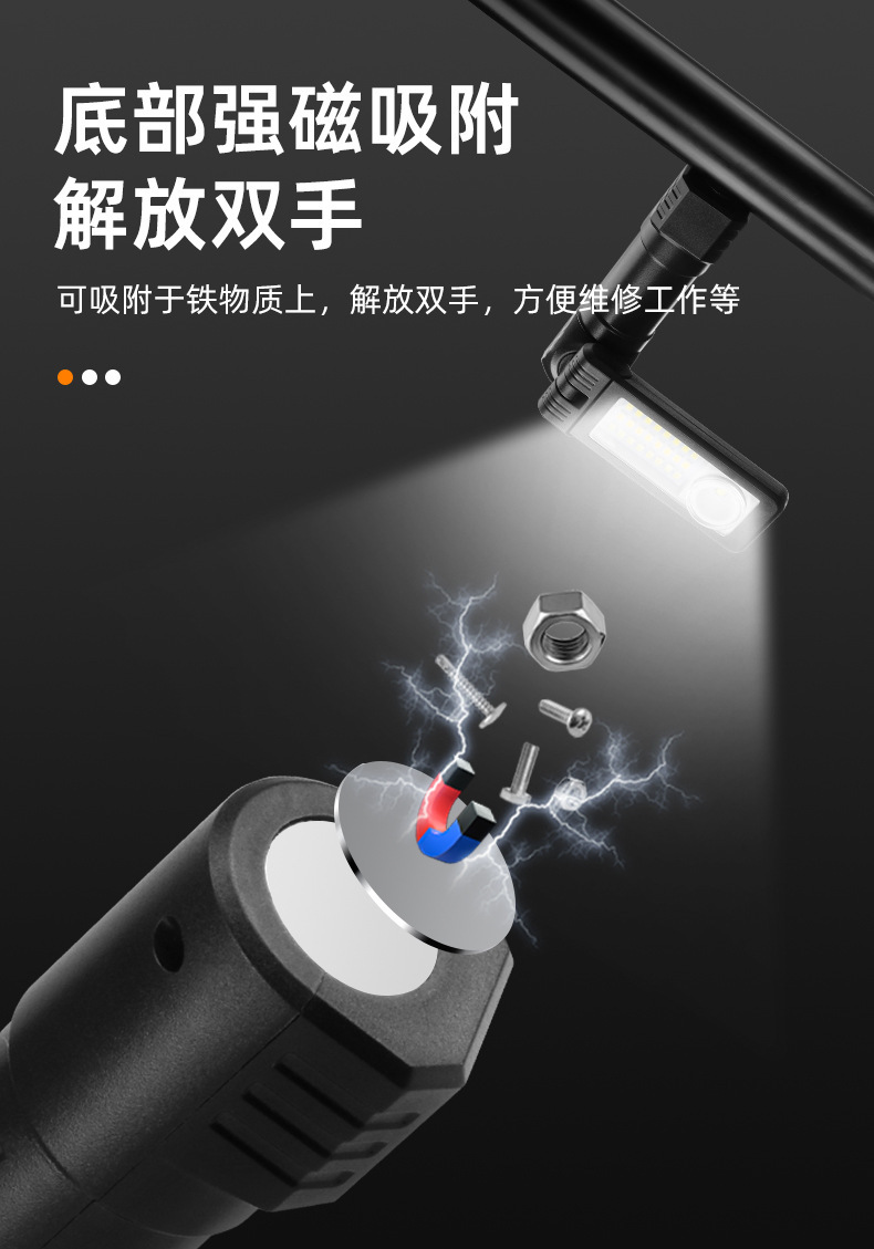 새로운 다기능 작업 램프 강한 자기 휴대용 긴 내구성 LED 조명 슈퍼 밝은 강한 빛 COB 충전식 자동차 수리 램프