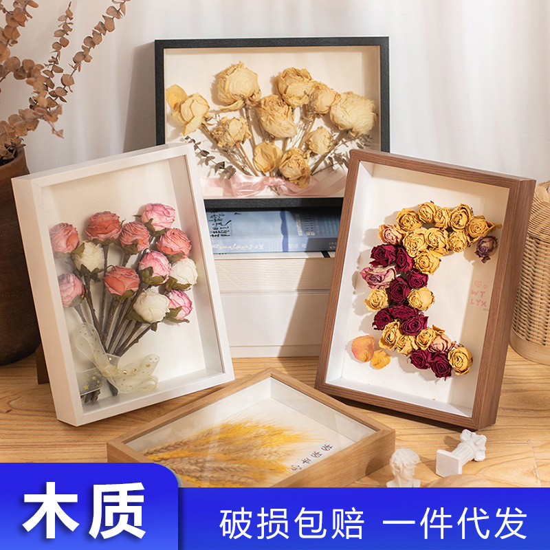 ✅장미 말린 꽃 사진 프레임 스테레오 중공 나비 영원한 꽃 8 인치 수제 DIY 쉘 Gypsophila Gypsophila 그림스토어 가기
