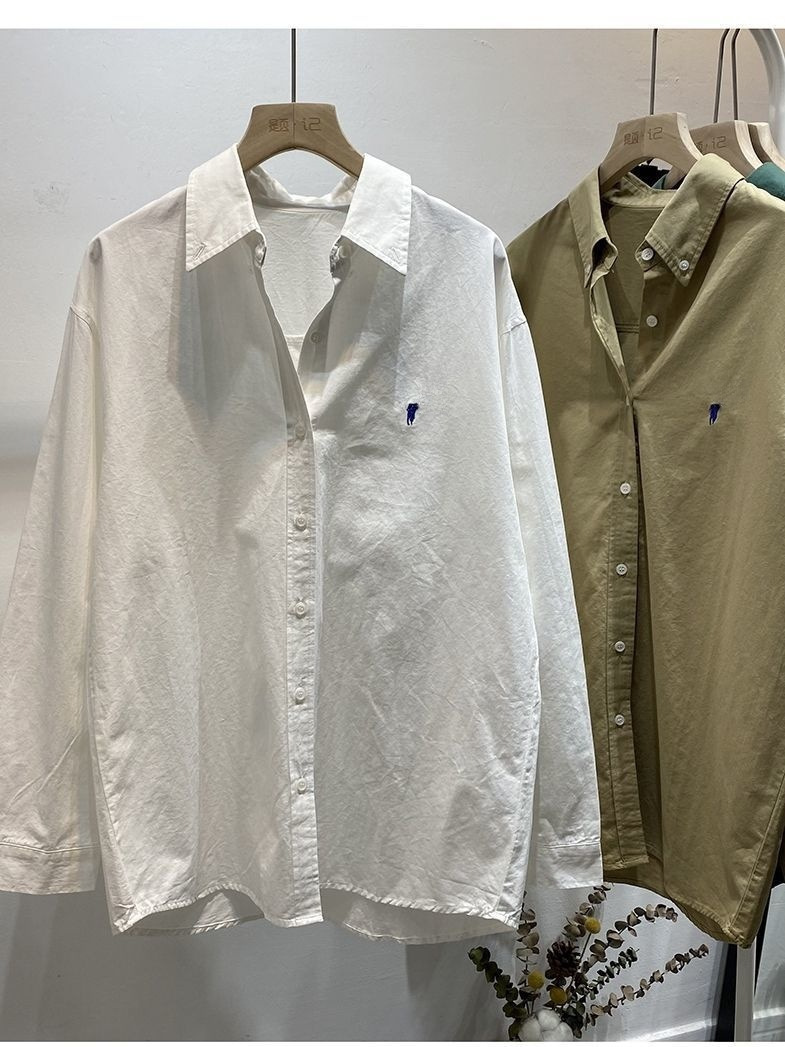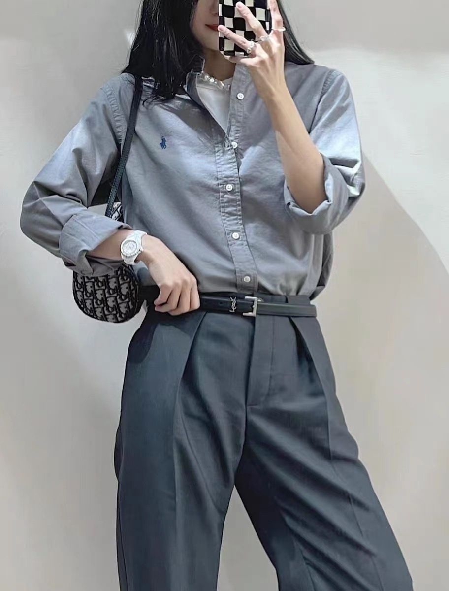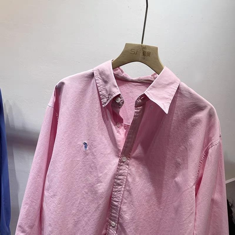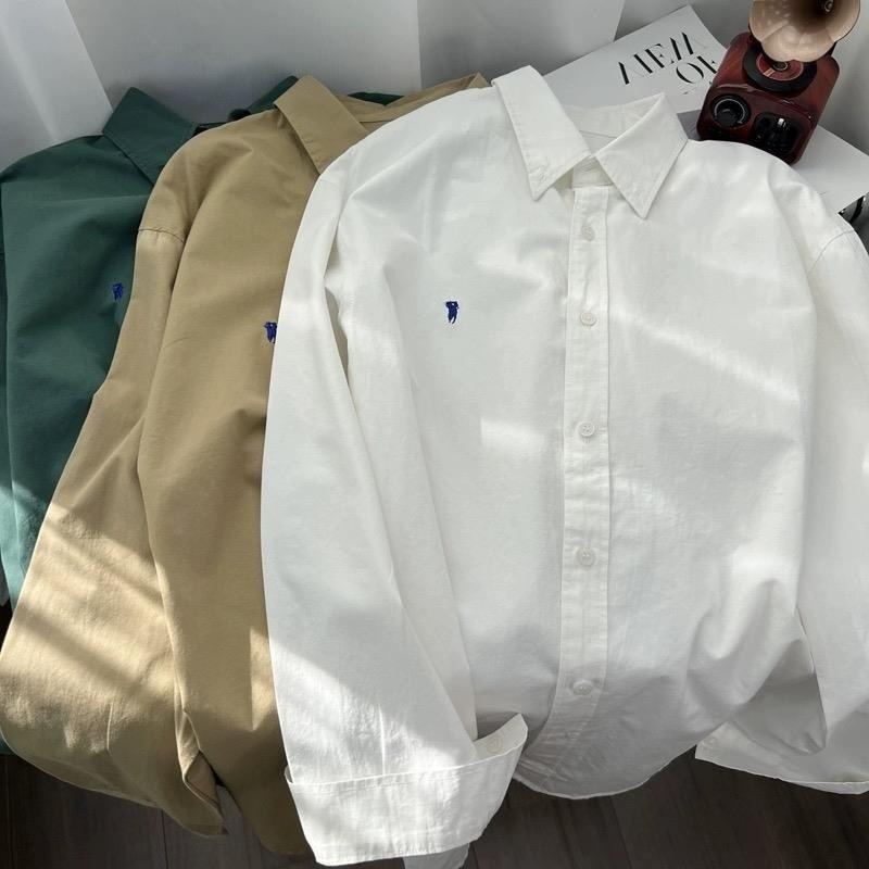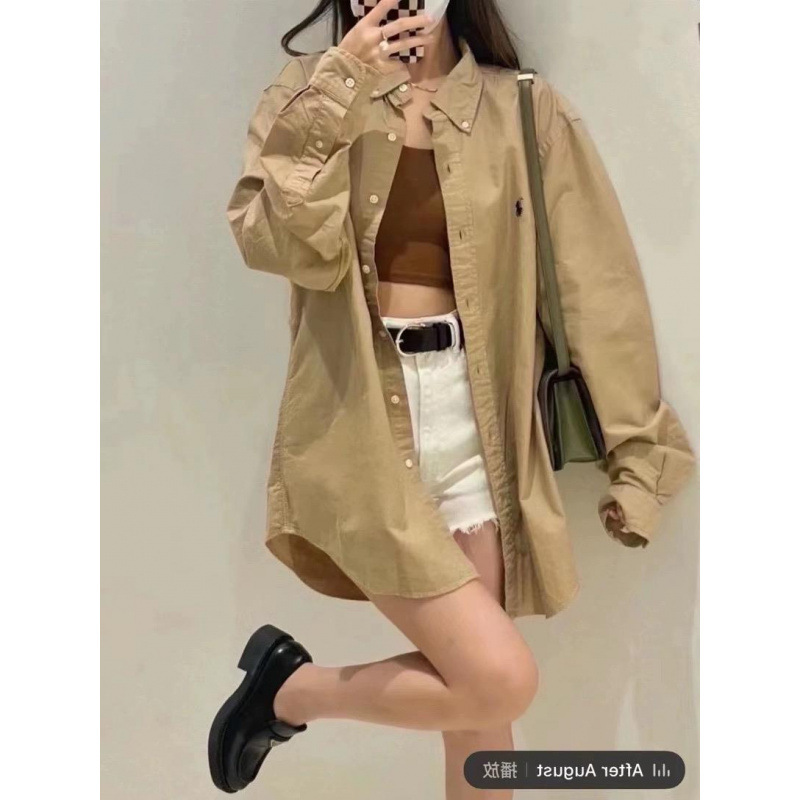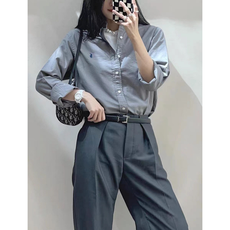 랄프 말 셔츠 여성의 봄과 가을 미국 복고풍 긴 소매베이스 셔츠, 쌓인 자수 일본 공구 셔츠스토어 가기
