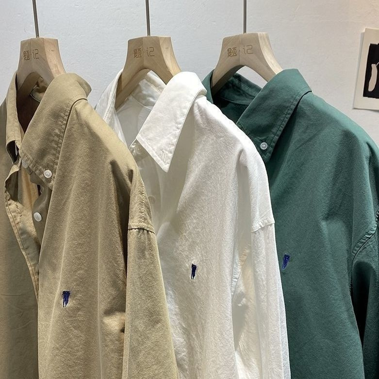 랄프 말 셔츠 여성의 봄과 가을 미국 복고풍 긴 소매베이스 셔츠, 쌓인 자수 일본 공구 셔츠