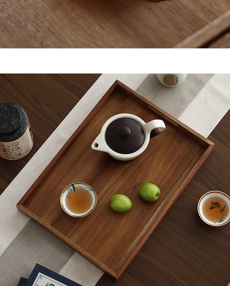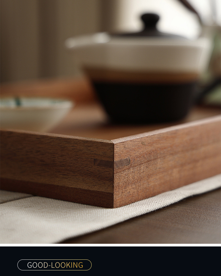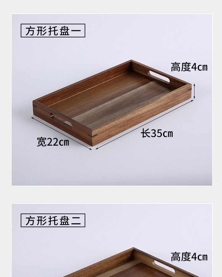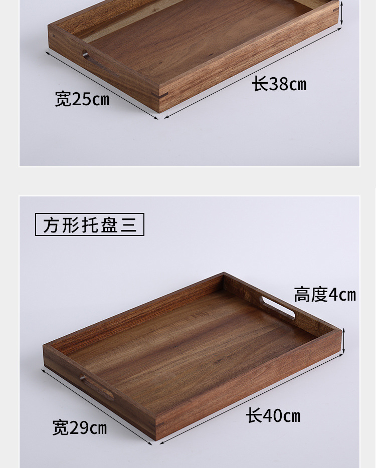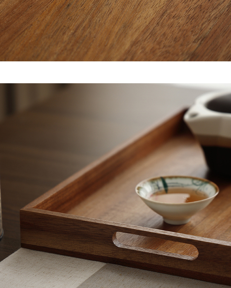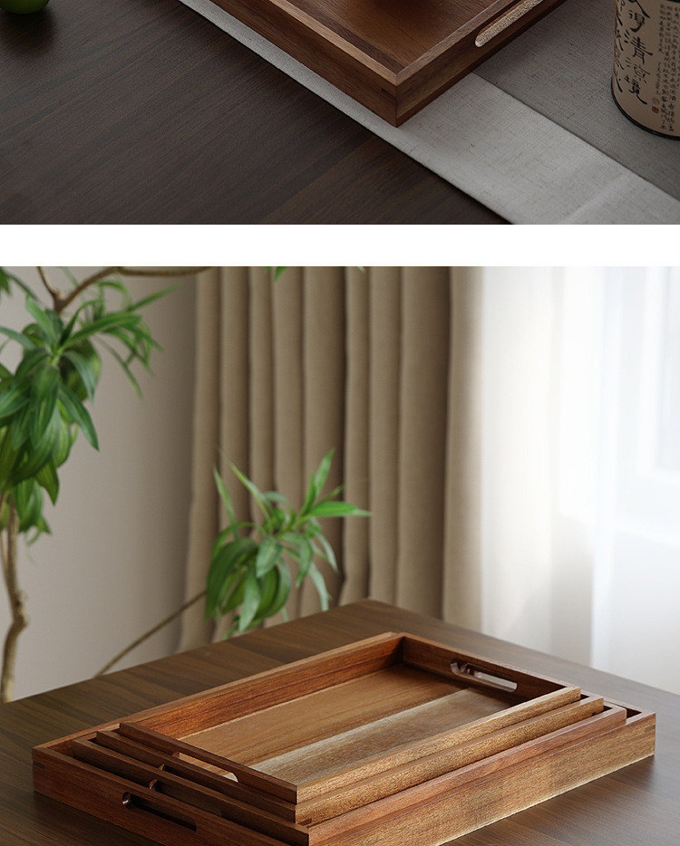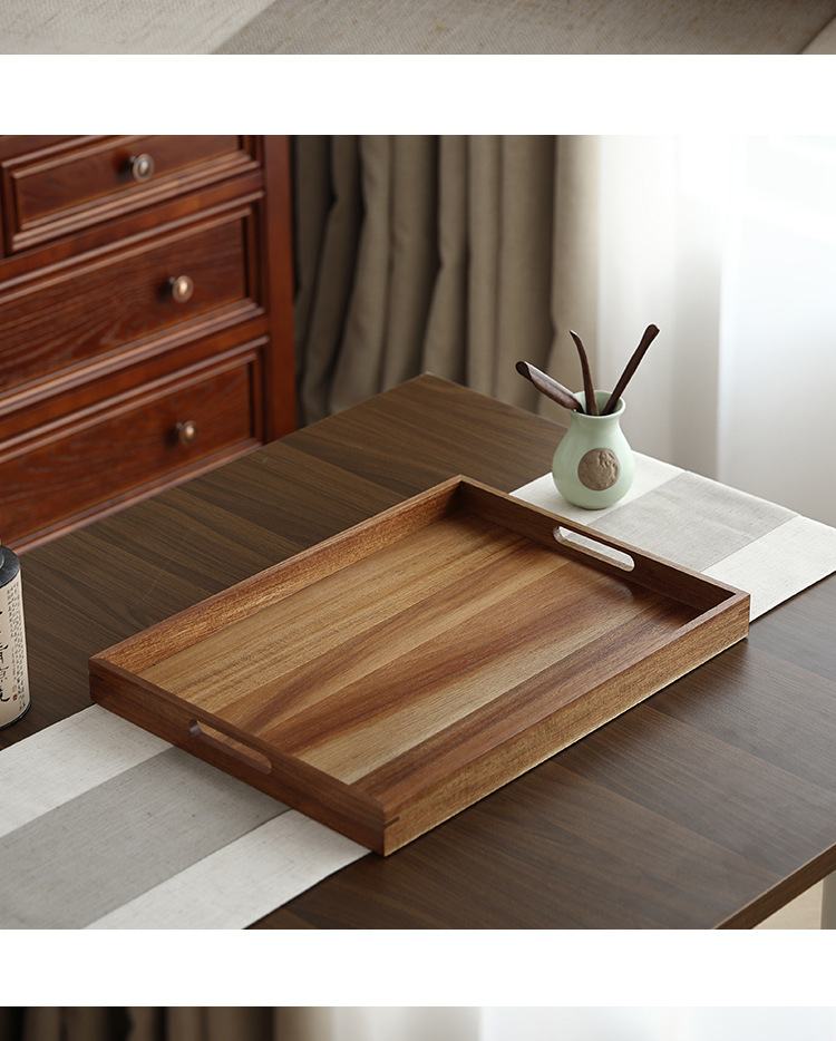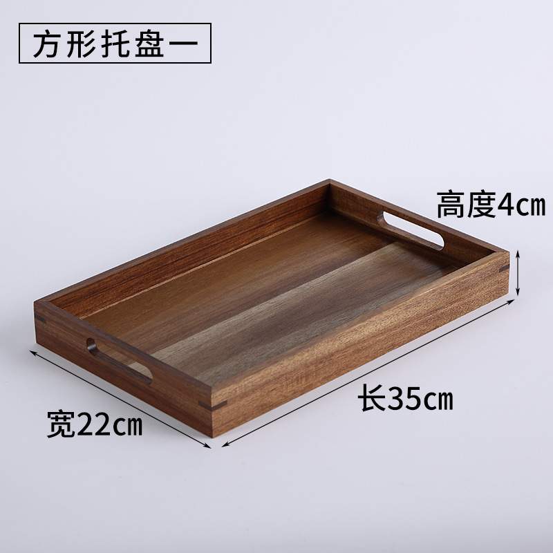빈티지 아카시아 나무 트레이 직사각형 가정용 나무 트레이 일본 스타일의 단단한 나무 차 트레이 핸들 상업용 나무 디너 플레이트