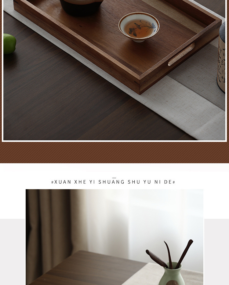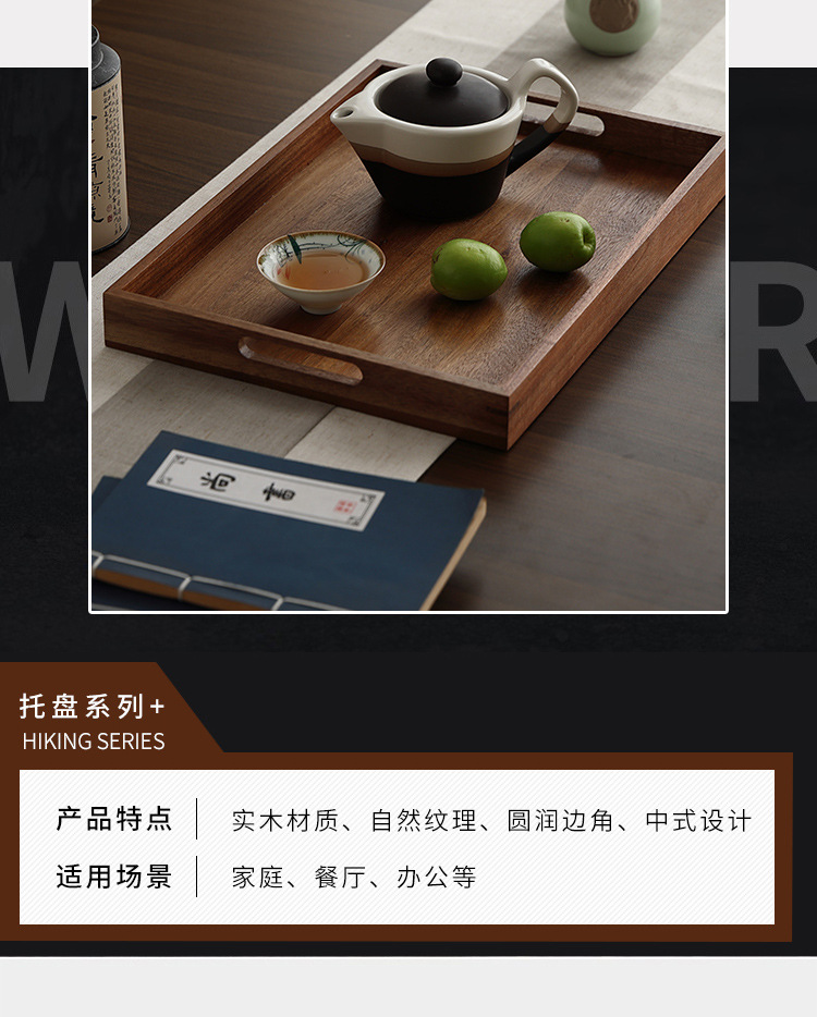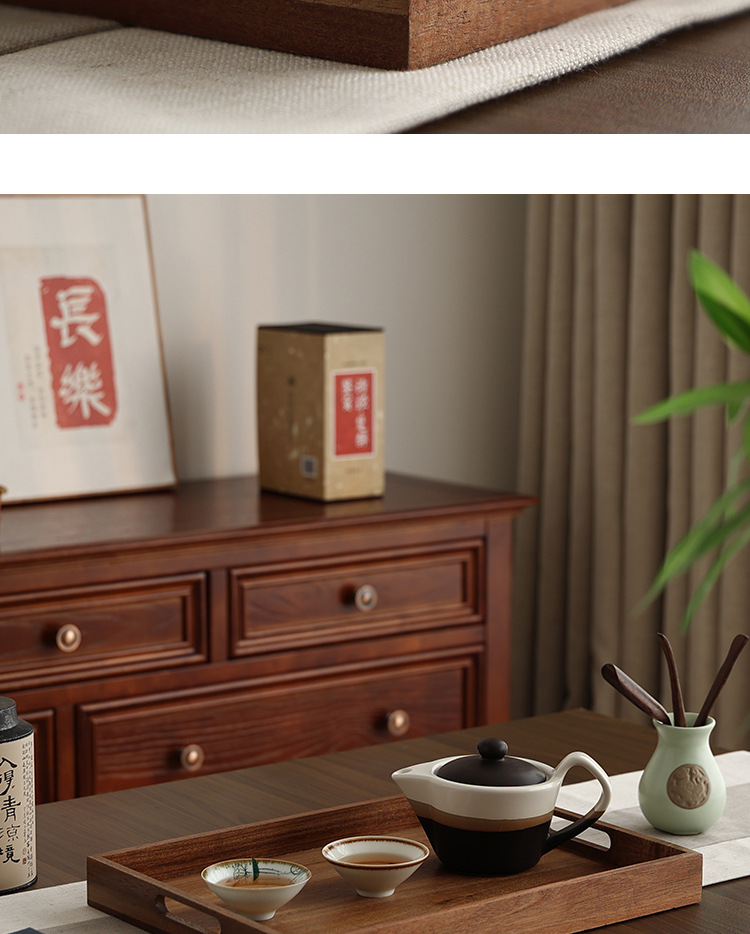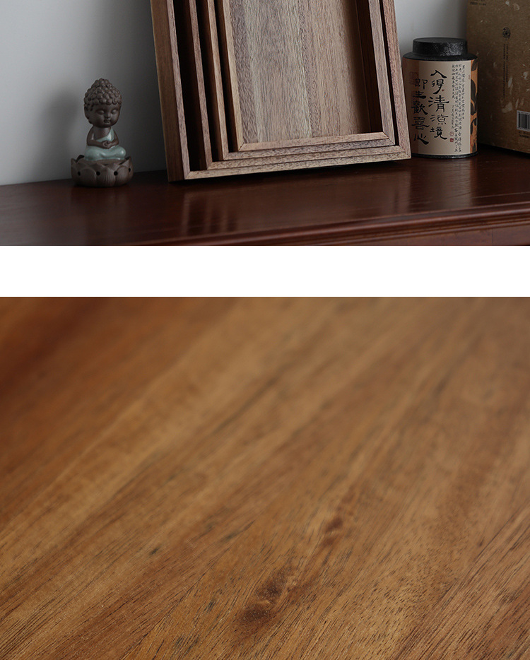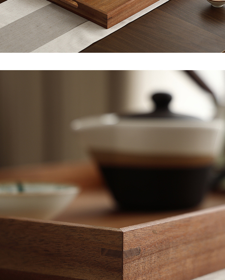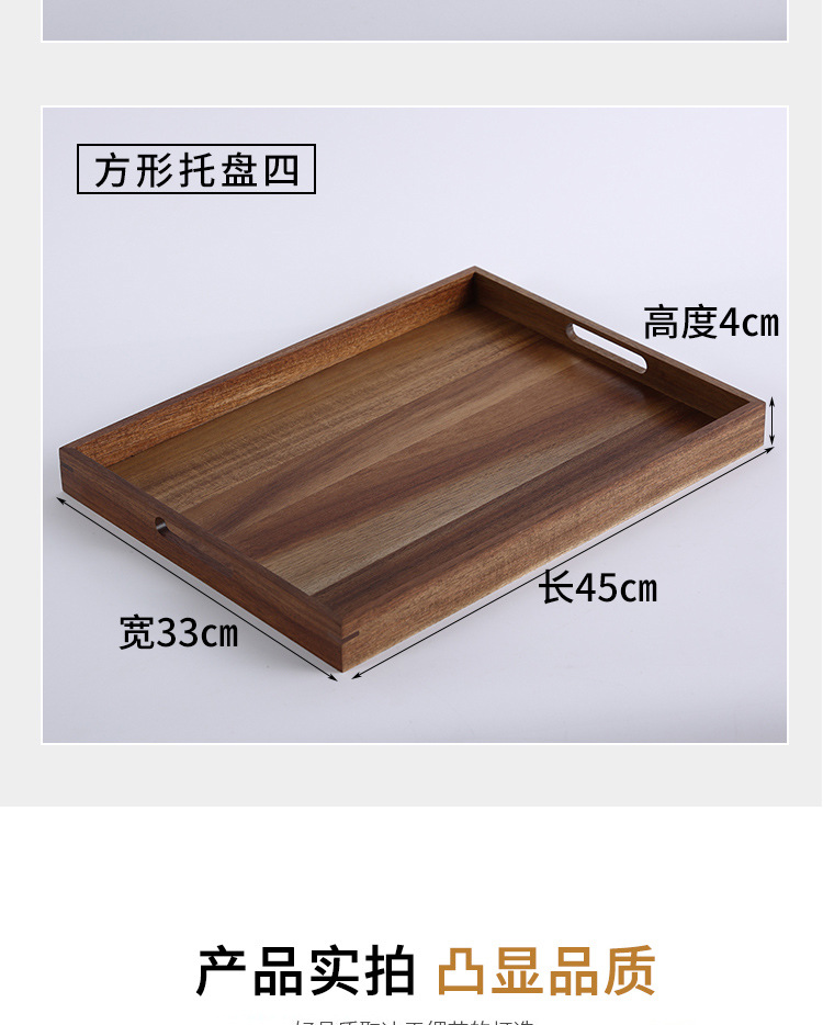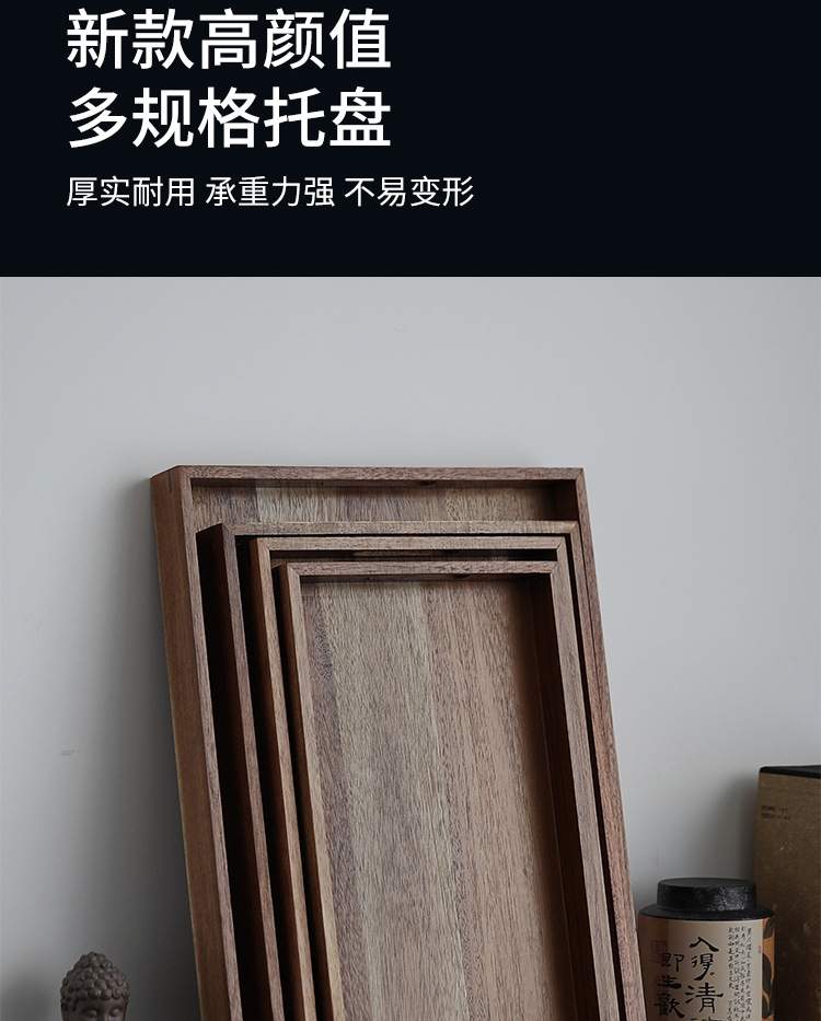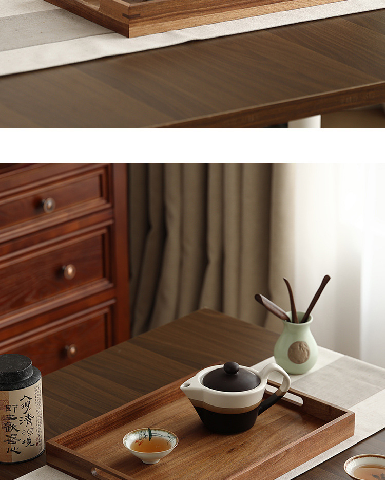 빈티지 아카시아 나무 트레이 직사각형 가정용 나무 트레이 일본 스타일의 단단한 나무 차 트레이 핸들 상업용 나무 디너 플레이트