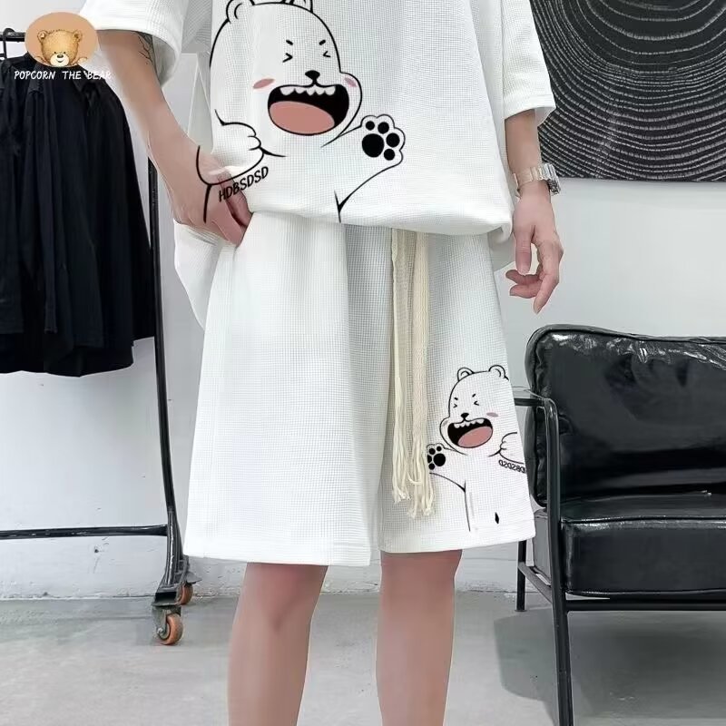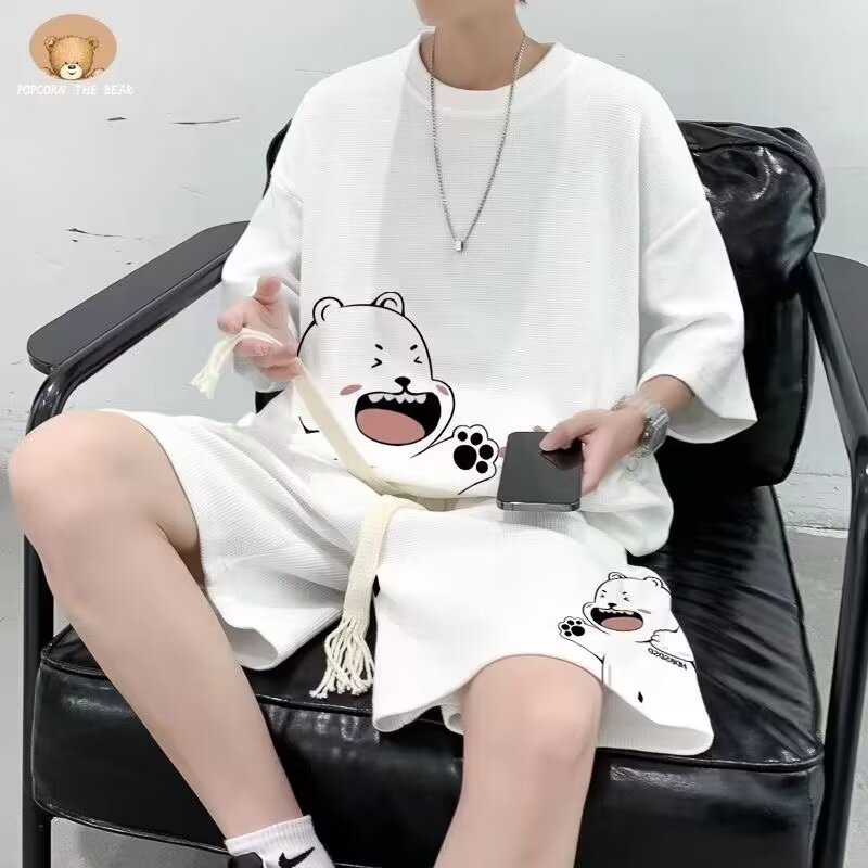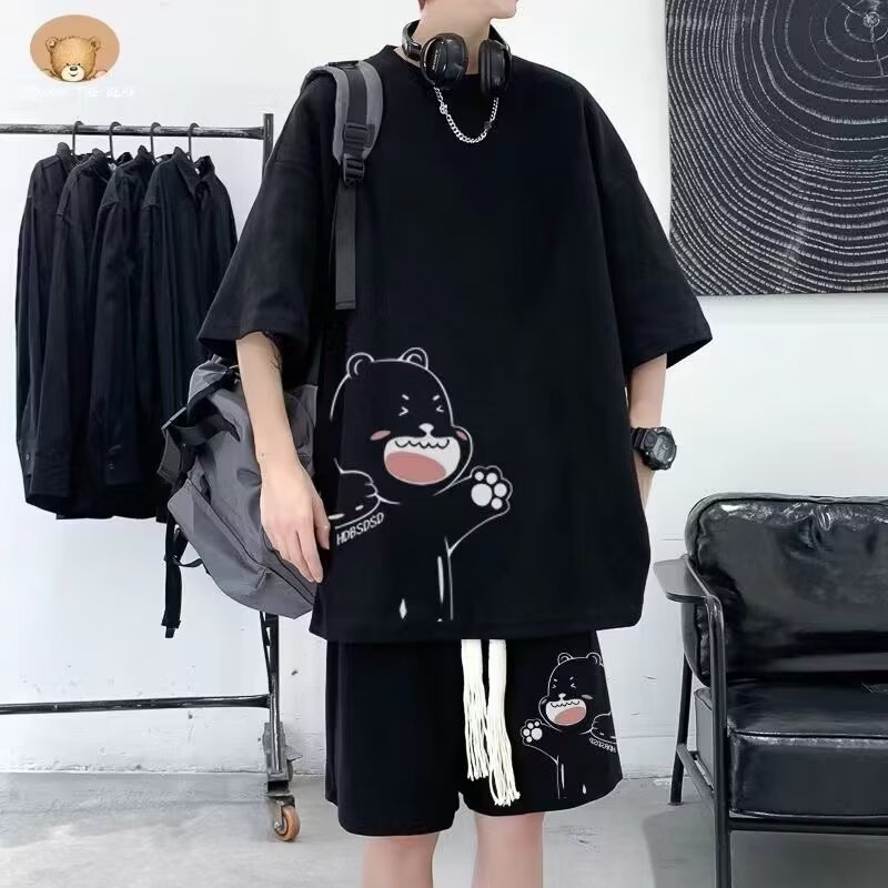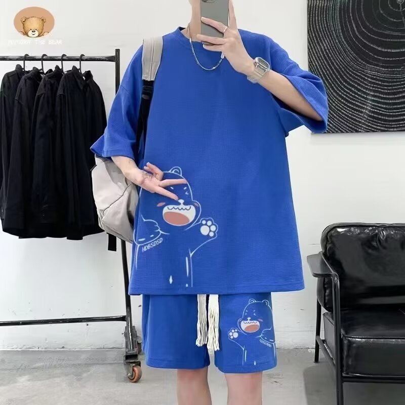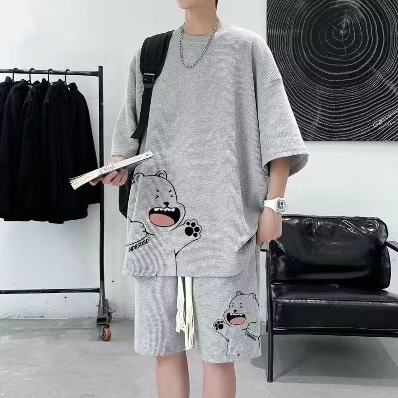 여름 새로운 라운드 넥 반팔 셔츠 반바지 세트 남자 캐주얼 패션 올 매치 투피스 세트스토어 가기