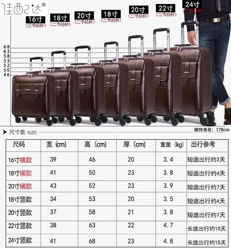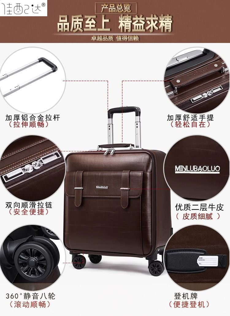남성과 여성의 1816 인치 비즈니스 20 가죽 트롤리 케이스 유니버설 휠 보딩 박스 수하물 22 인치 가방스토어 가기