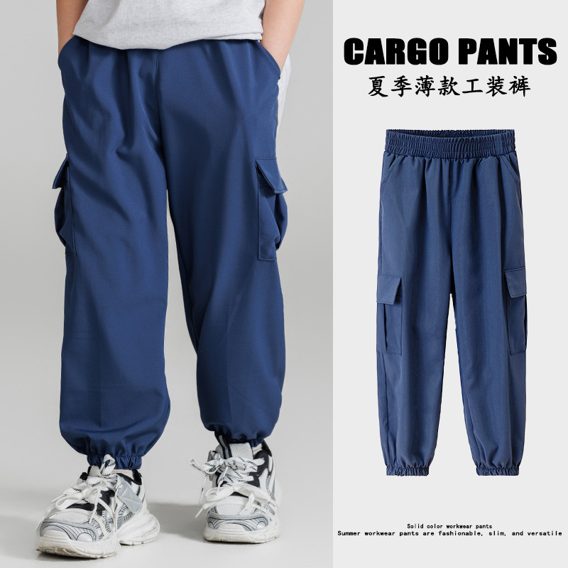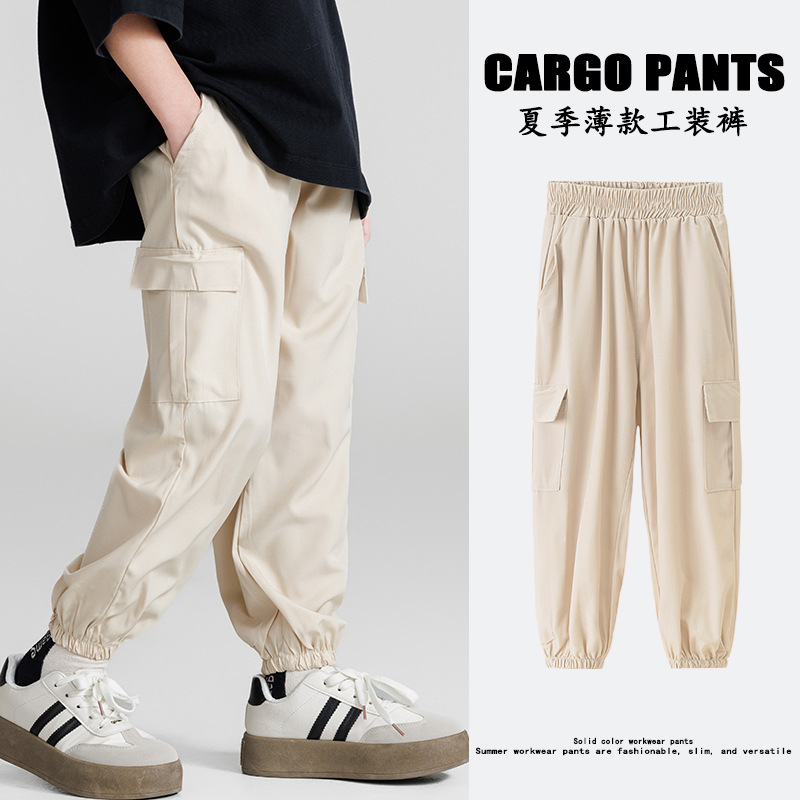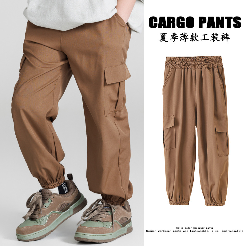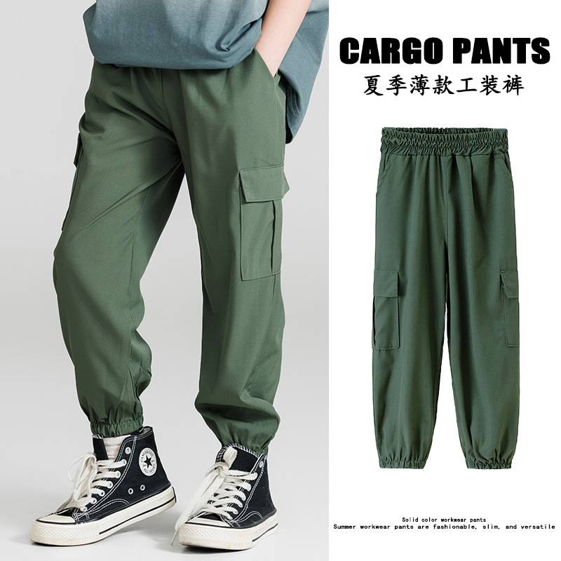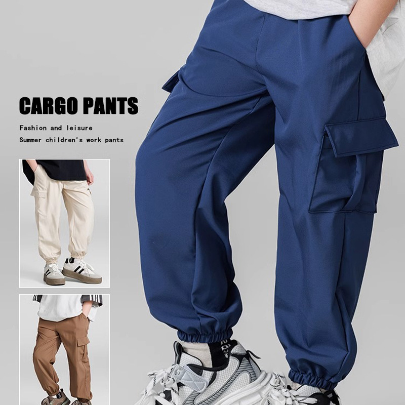 코일 바지 남성 봄과 가을 새로운 디자인 센스 빅 포켓 트렌디 브랜드 한국 스타일 발 바지 어린이 캐주얼 스포츠 바지