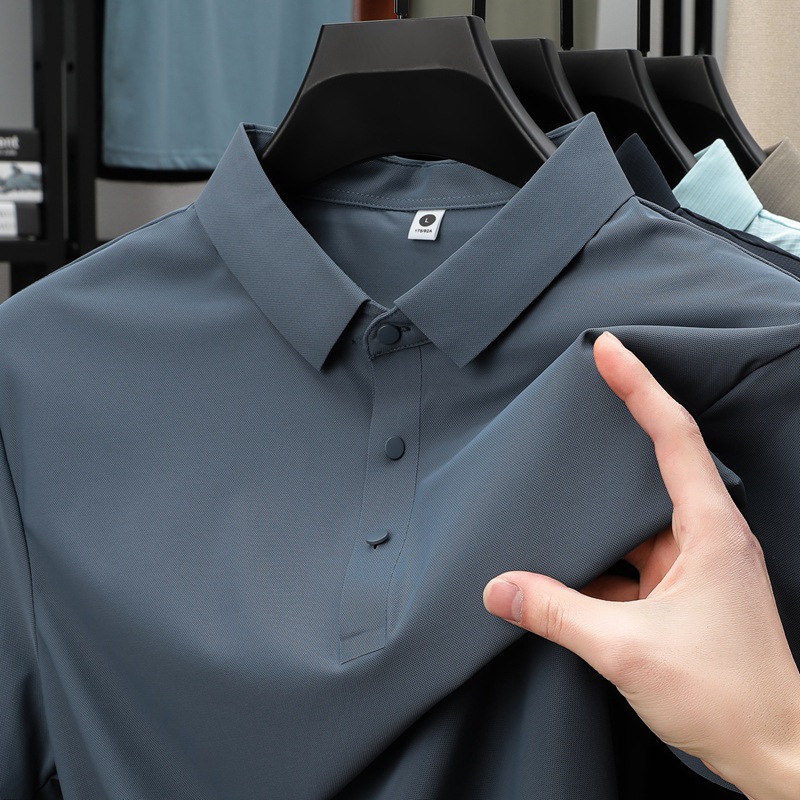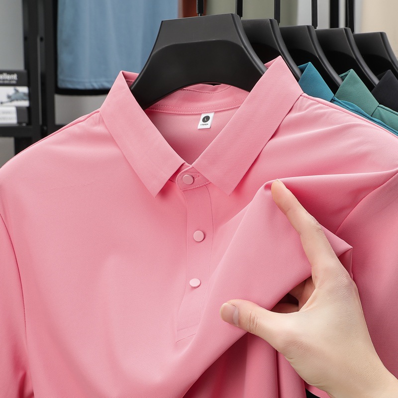 폭발성 아이스 실크 원활한 폴로 셔츠 남자 여름 국경 플러스 사이즈 느슨한 비즈니스 골프 레이스 반팔 티셔츠스토어 가기