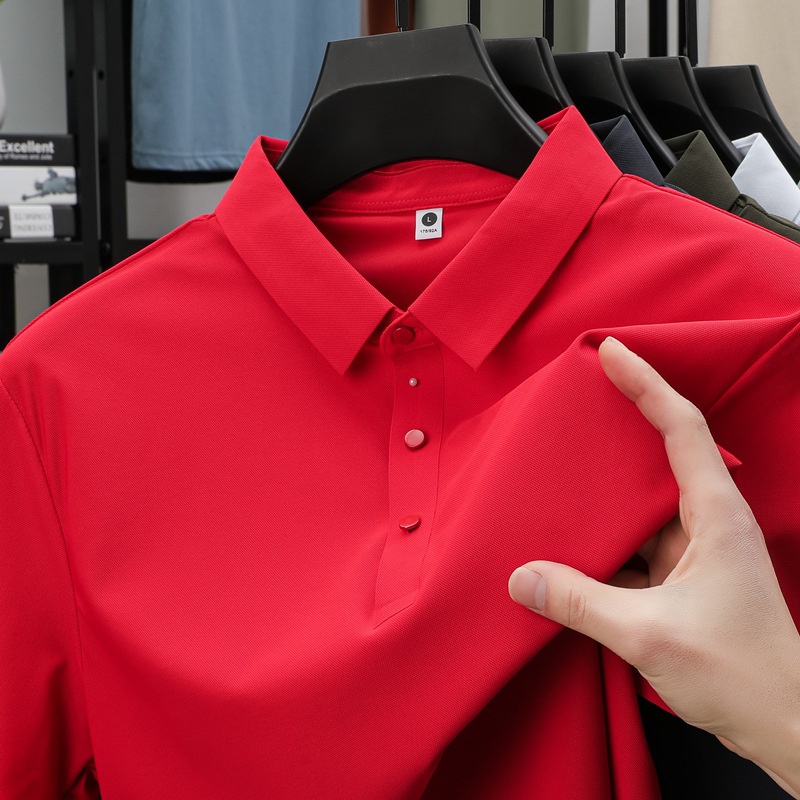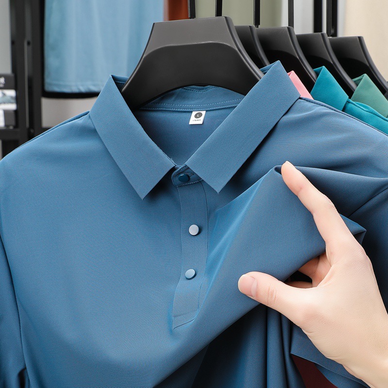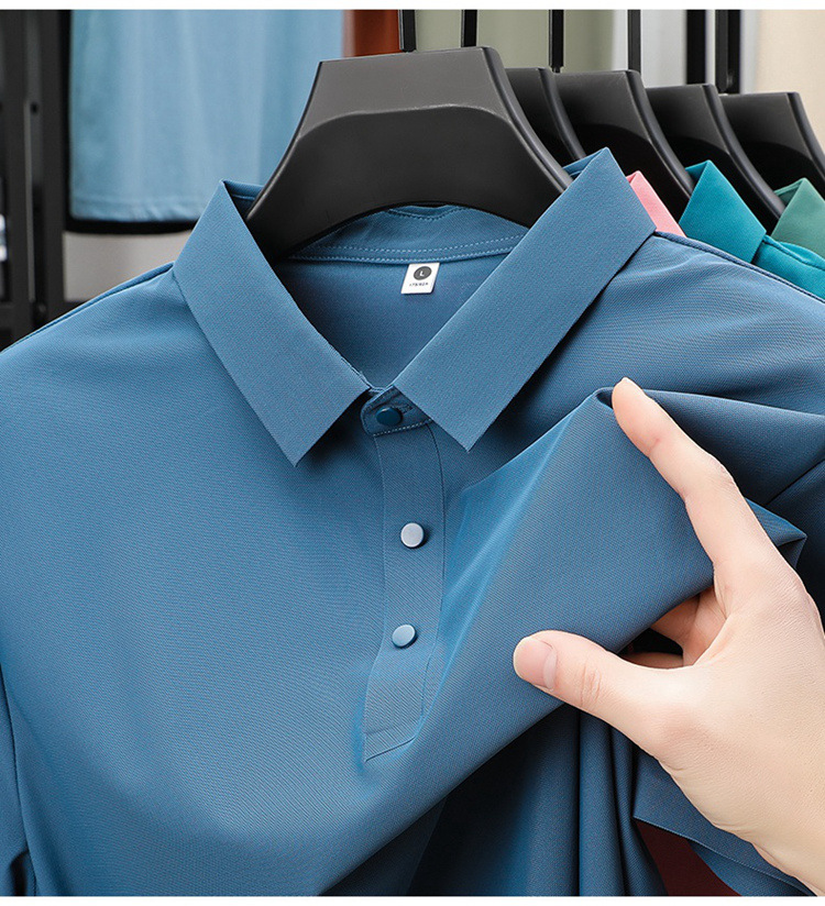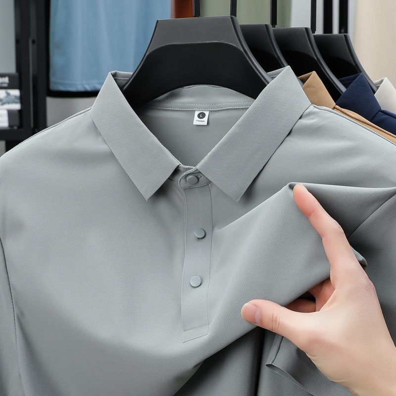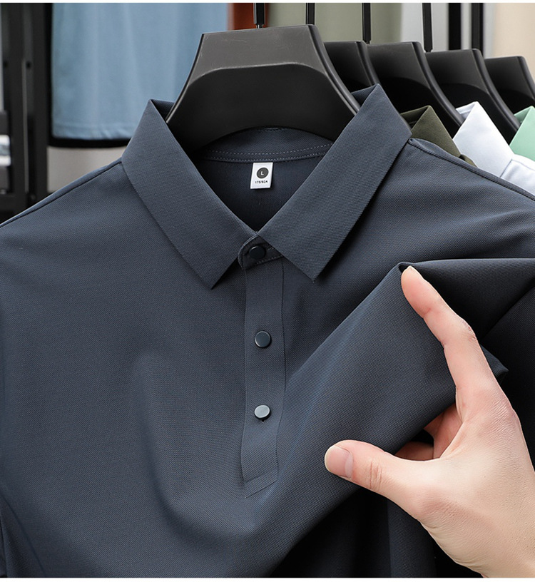 폭발성 아이스 실크 원활한 폴로 셔츠 남자 여름 국경 플러스 사이즈 느슨한 비즈니스 골프 레이스 반팔 티셔츠