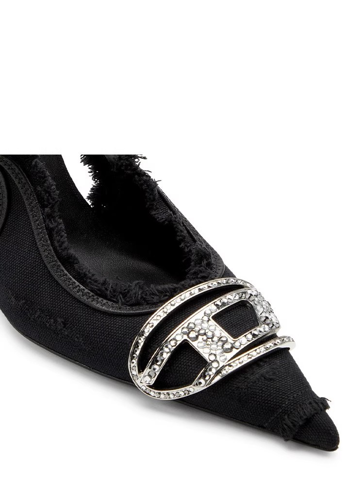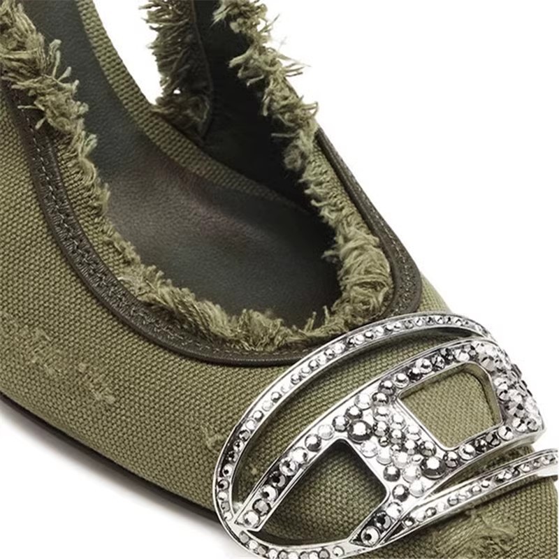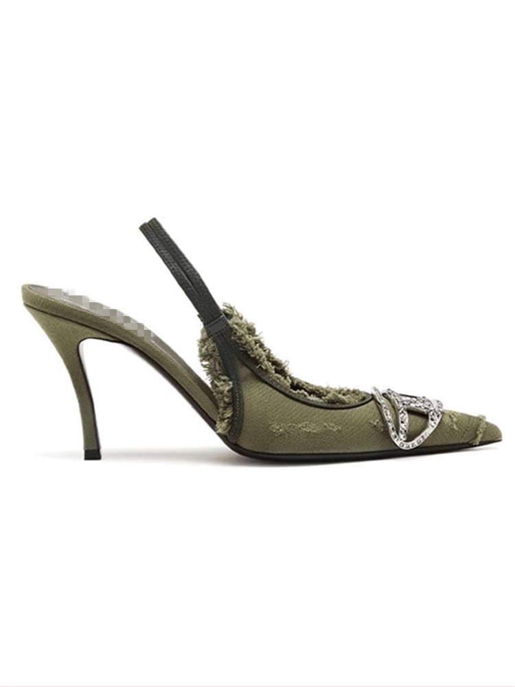 2025 새로운 빈티지 데님 컬러 포인팅 후면 하이힐 금속 장식 포인팅 우아한 패션 여성 신발스토어 가기