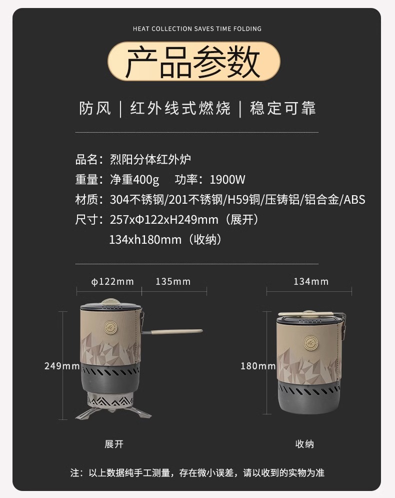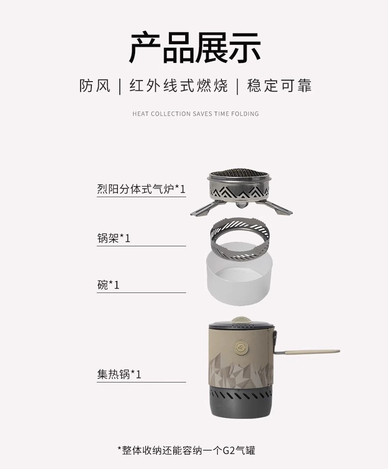 Huofeng Lieyang 분할 형 적외선 스토브 캠핑 세트 냄비 가스 스토브 야외 난방 스토브 열 수집기스토어 가기
