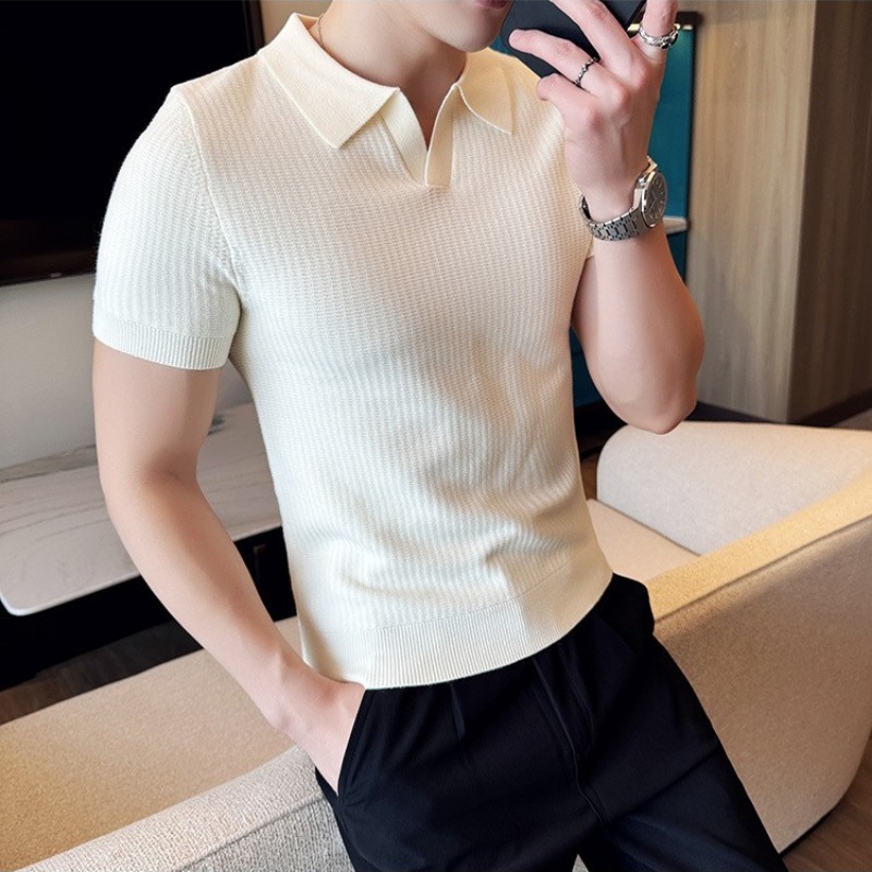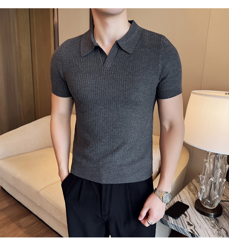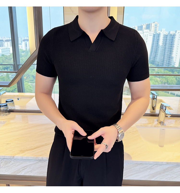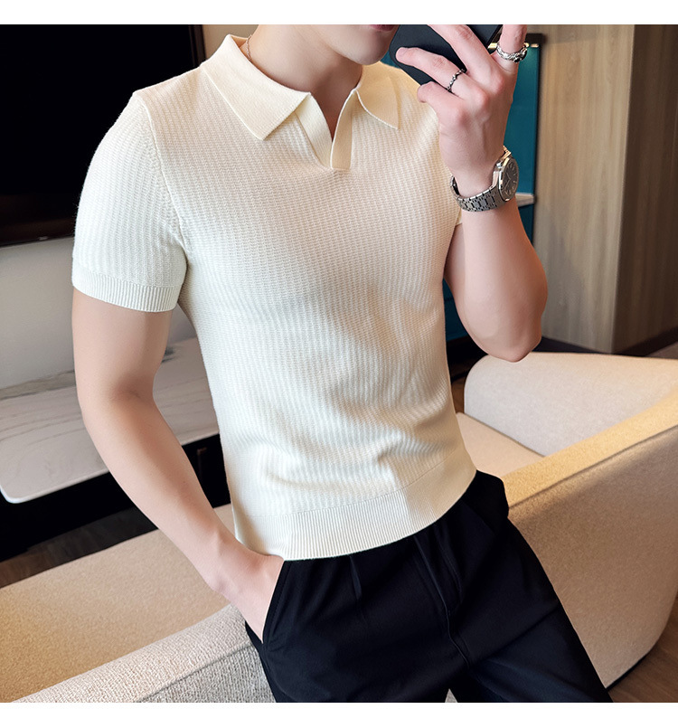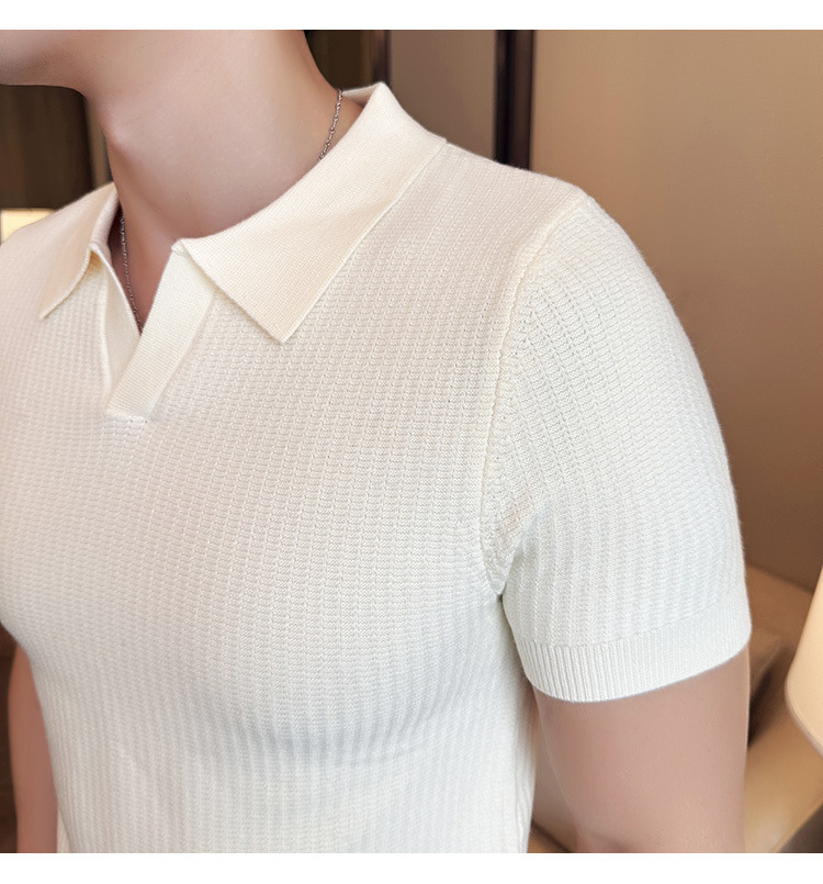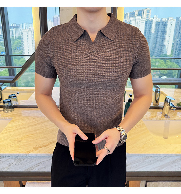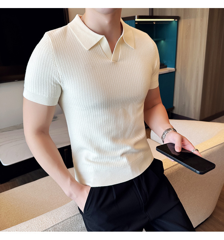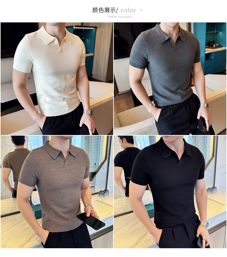 대외 무역 여름 슬림 핏 캐주얼 신선한 통기성 폴로 셔츠 비 다림질 유행 간단한 남성 단색 반팔 끈 니트스토어 가기