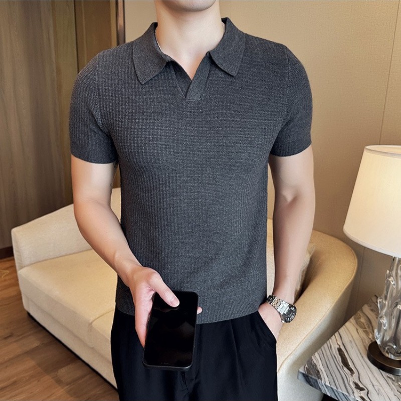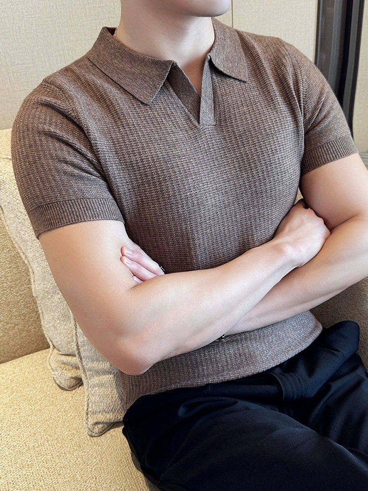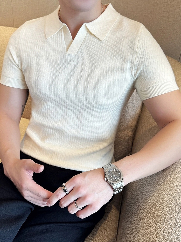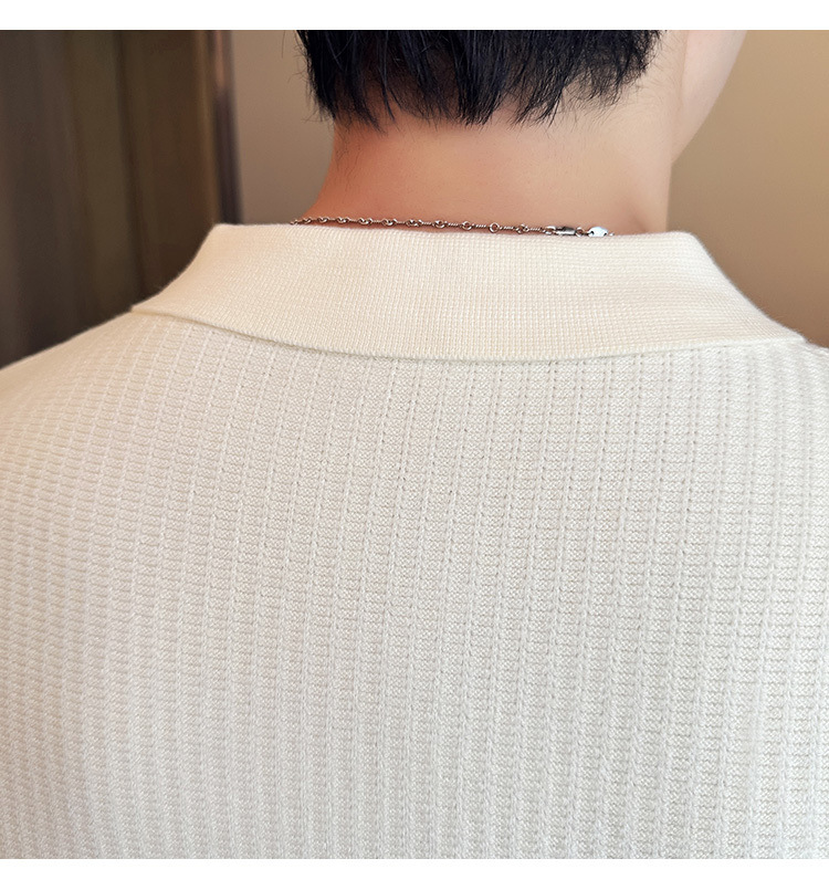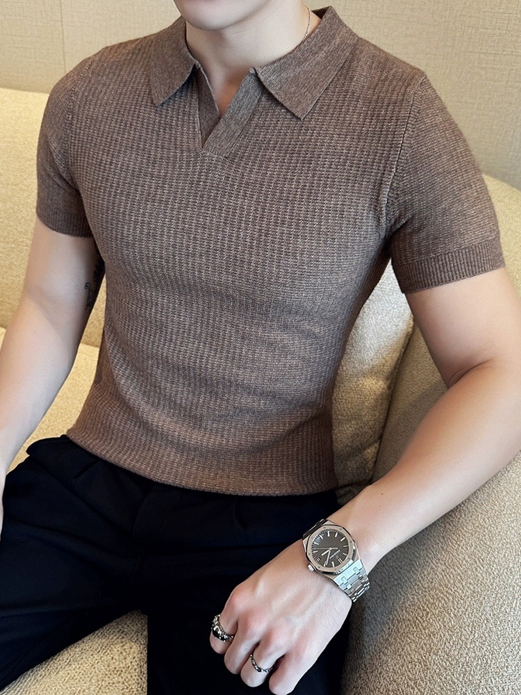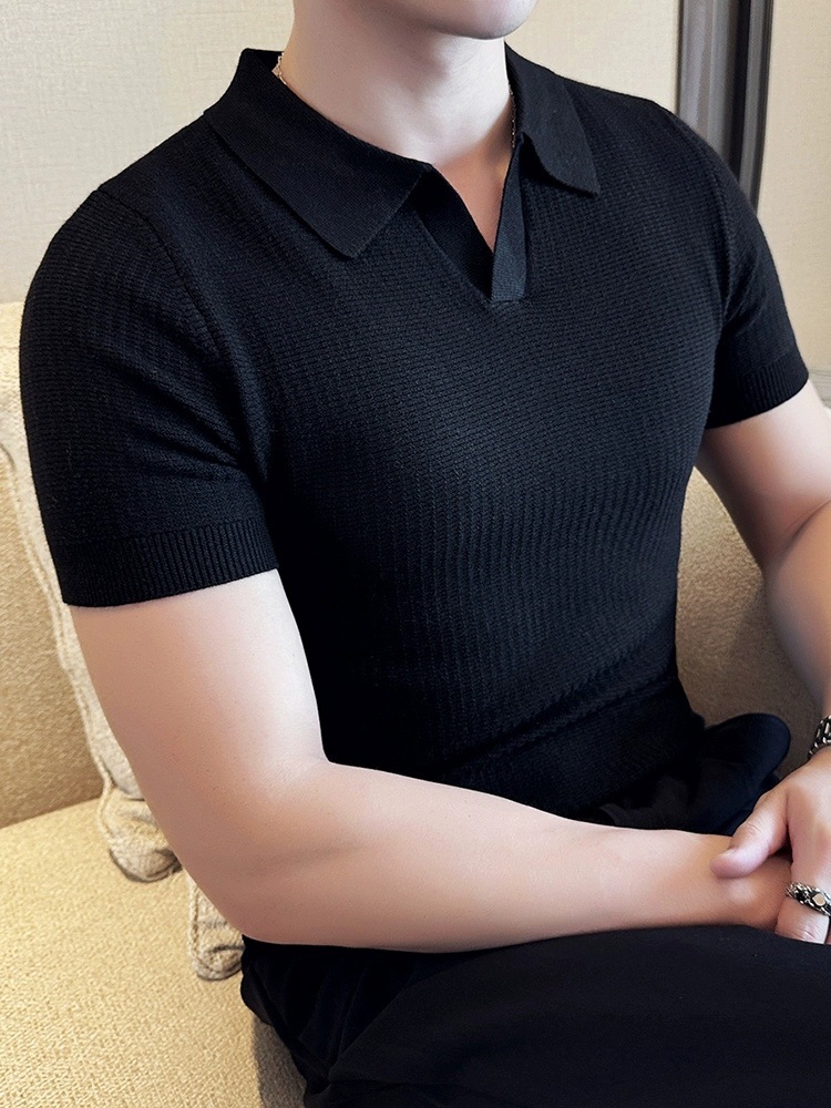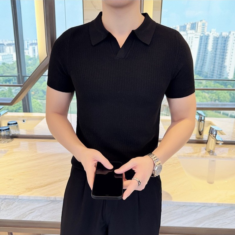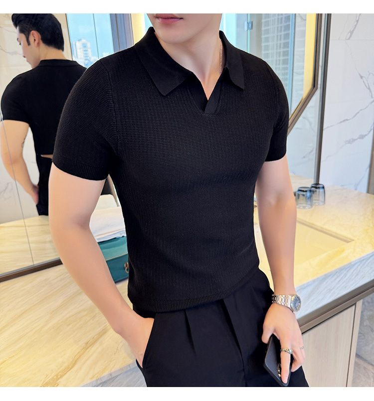 대외 무역 여름 슬림 핏 캐주얼 신선한 통기성 폴로 셔츠 비 다림질 유행 간단한 남성 단색 반팔 끈 니트스토어 가기