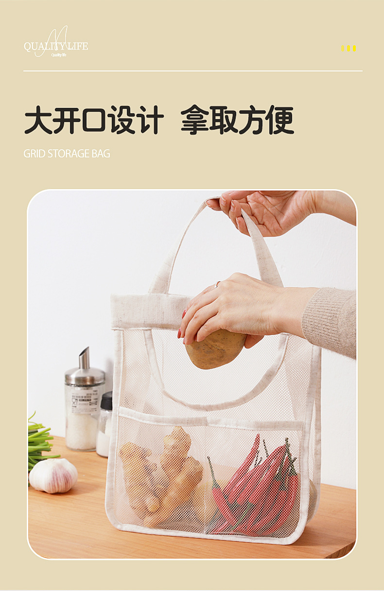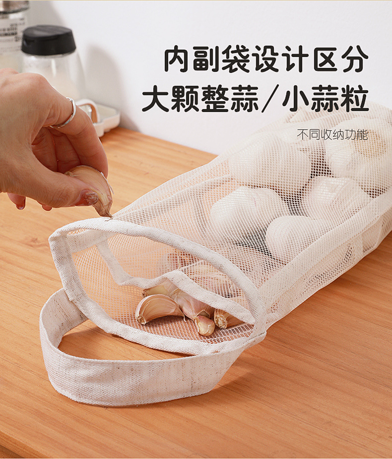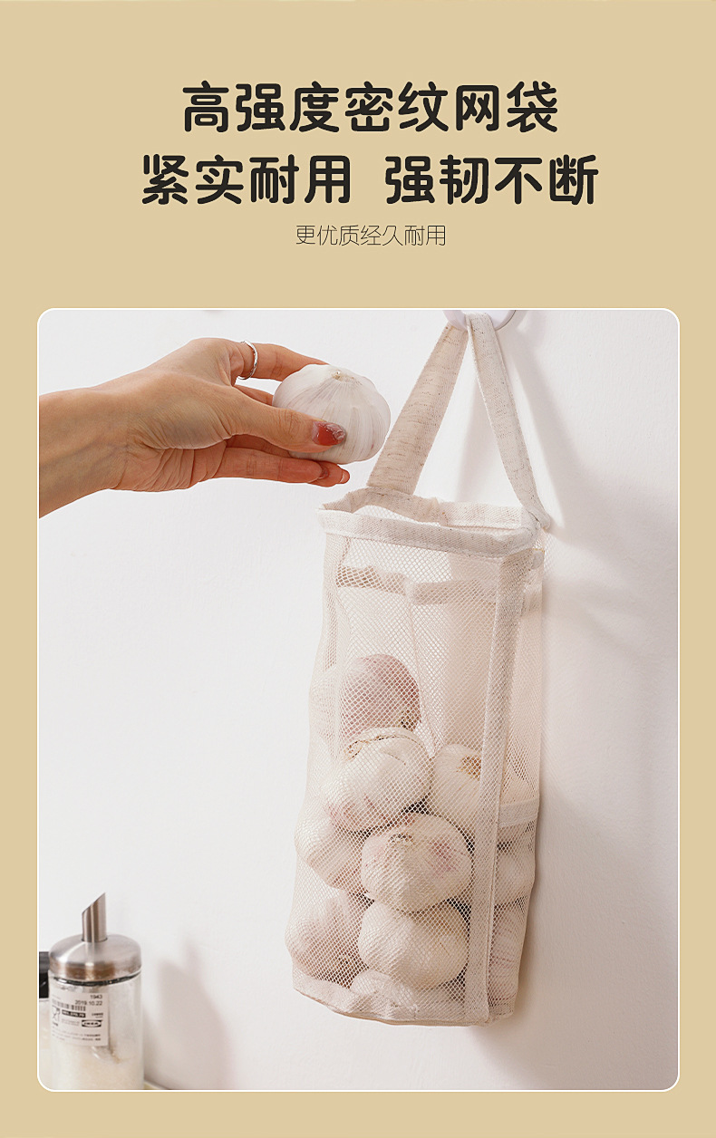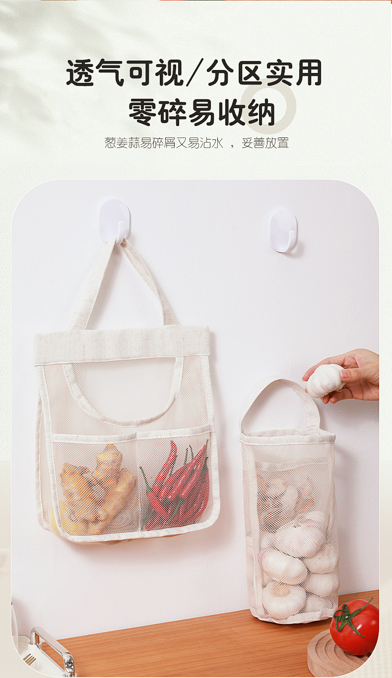 메쉬 통기성 생강 및 마늘 벽걸이 저장 가방 면화 및 리넨 두꺼운 메쉬 가방 대용량 주방 과일 및 야채 수분 방지 교수형 가방스토어 가기
